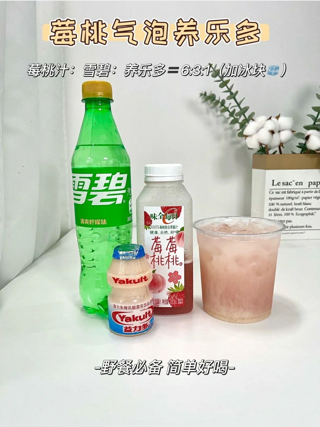 莓桃汁:雪碧:养乐多=6:3:1+冰块🧊