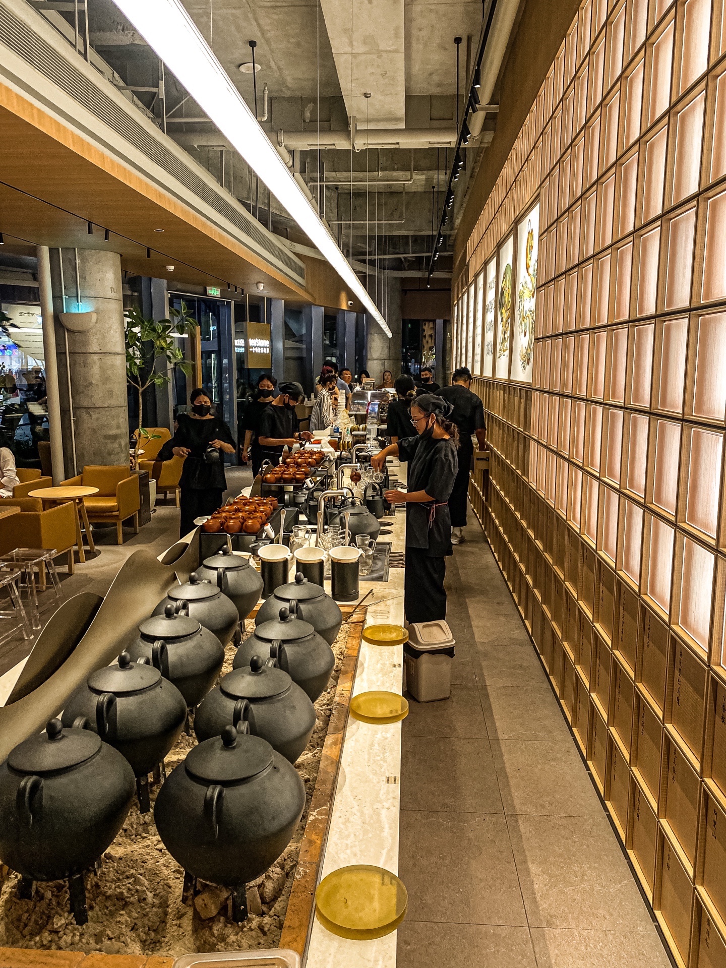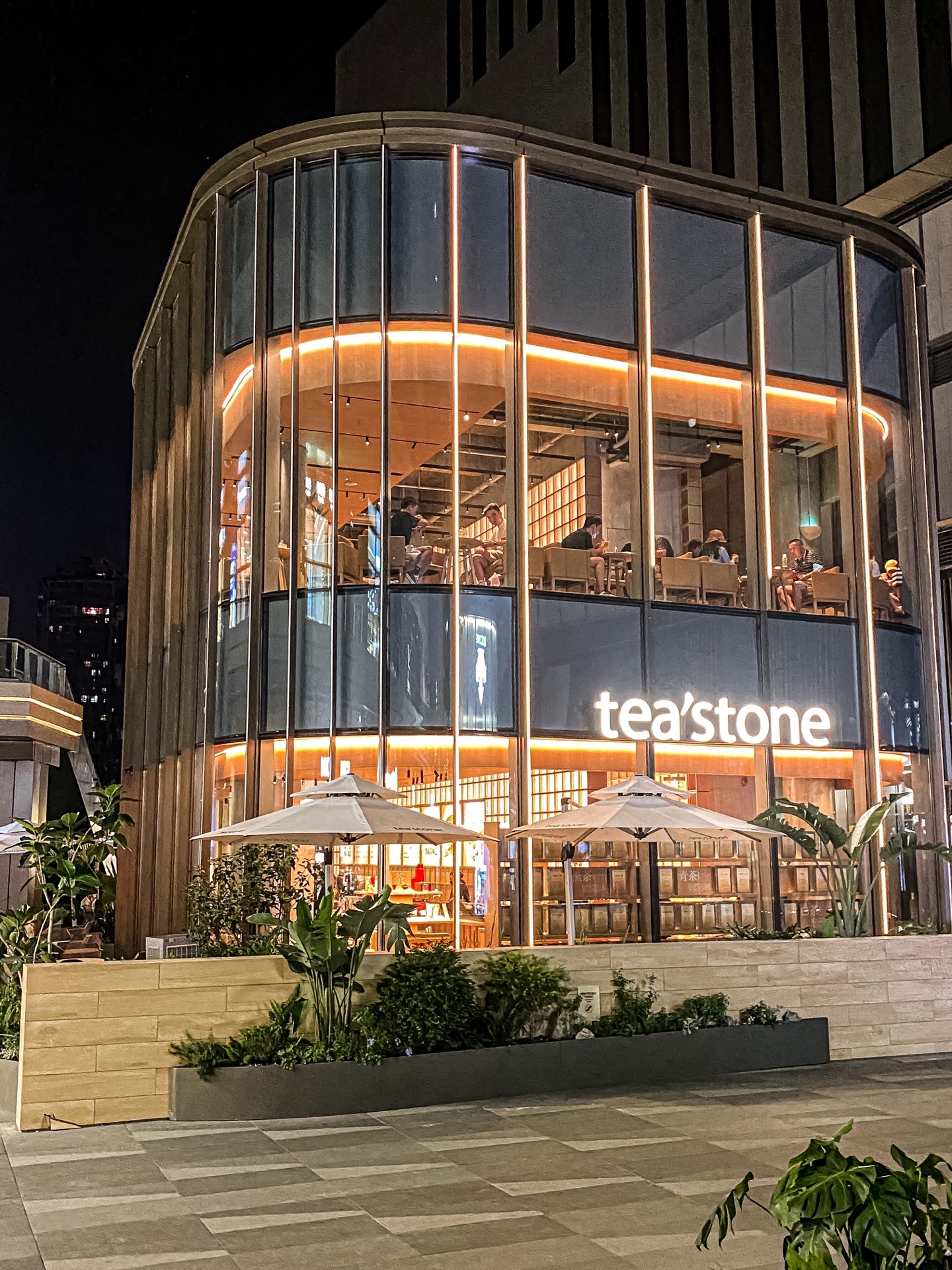 🏛独栋两层建筑,坐落在武汉万象城中庭,夜晚更美,呈现出玻璃房的氛围感,就像一座建筑艺术品!以东方的审美为核心,以中国的茶文化元素为主旋律,大厅卖茶、沏茶、煮茶过程一目了然,周边产品也都别具一格,很是好看