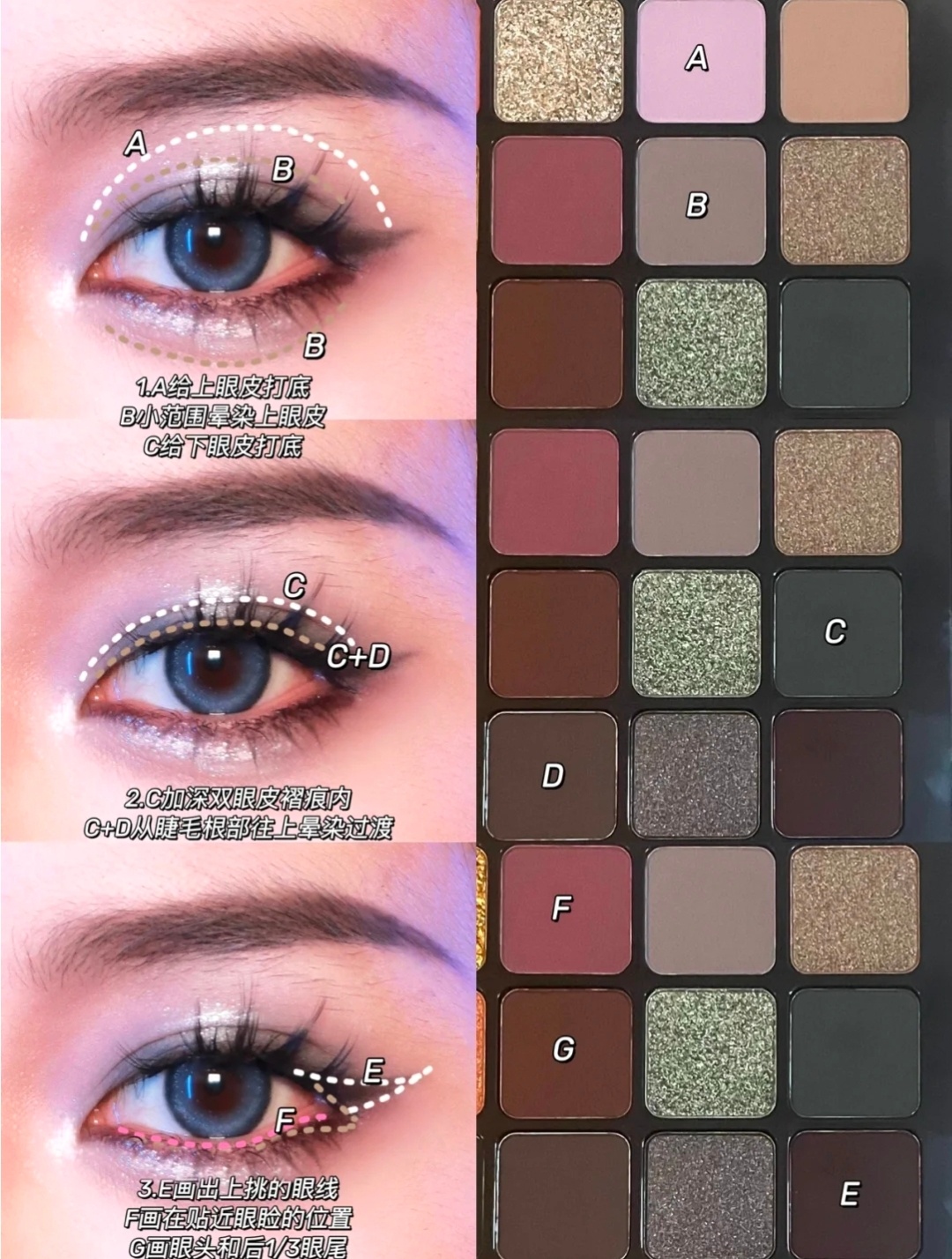 碎钻小烟熏眼妆是整个妆容的灵魂!视觉降温效果一绝~冷灰调眼妆搭配全包眼线,还有鞠式红色下眼睑,再用液体眼影给眼妆加上碎钻感,一整个氛围感拉满!