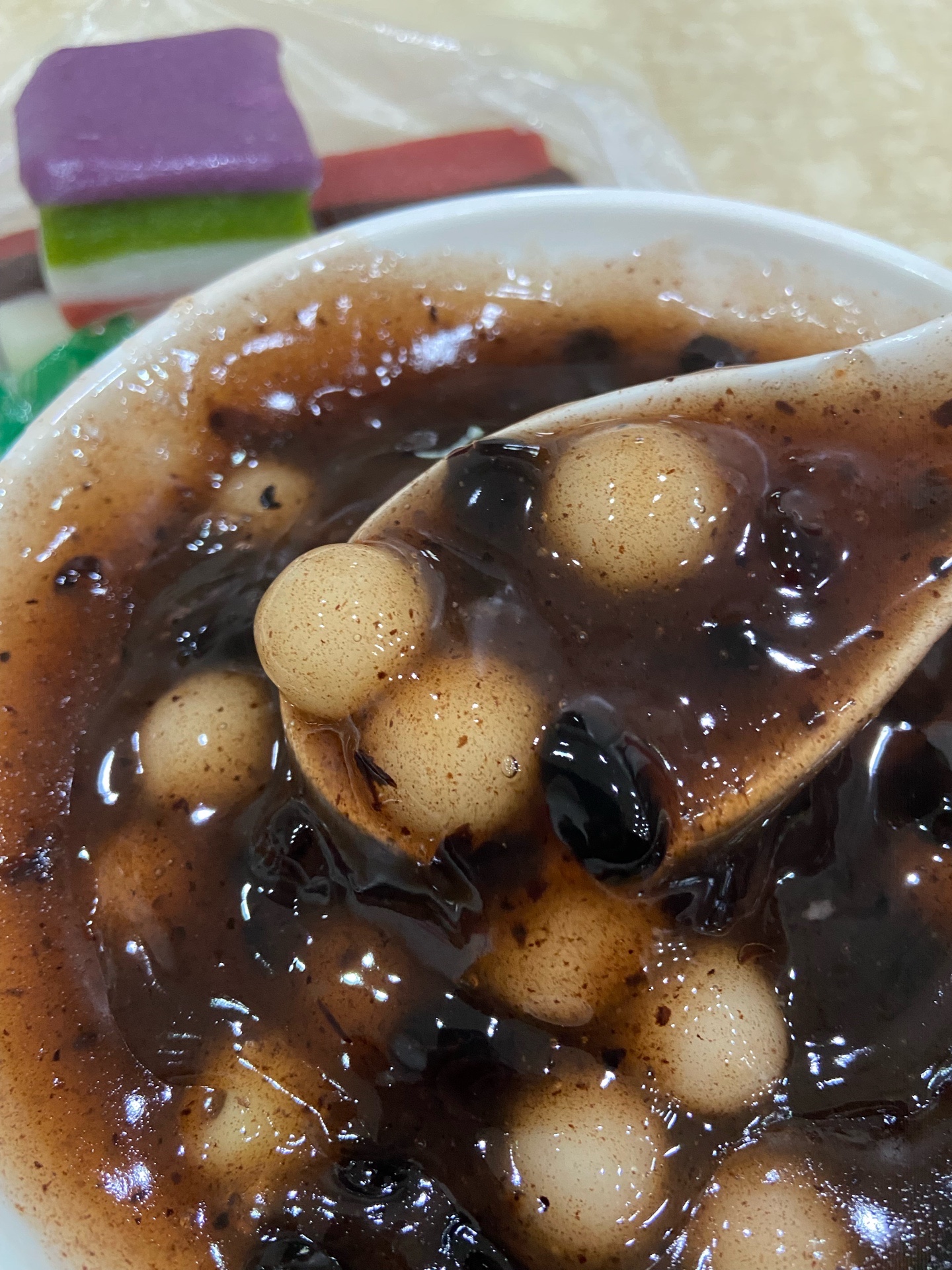 点了「莲子赤豆元宵」15元,藕粉浓稠糊糊加软糯的小圆子,超级好吃😋