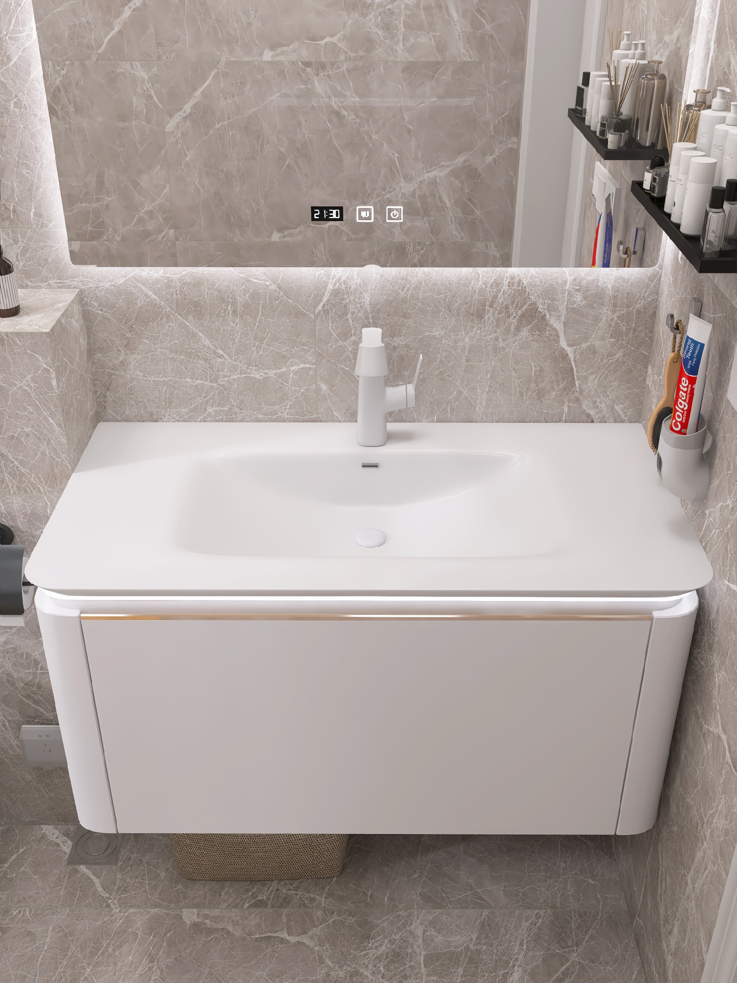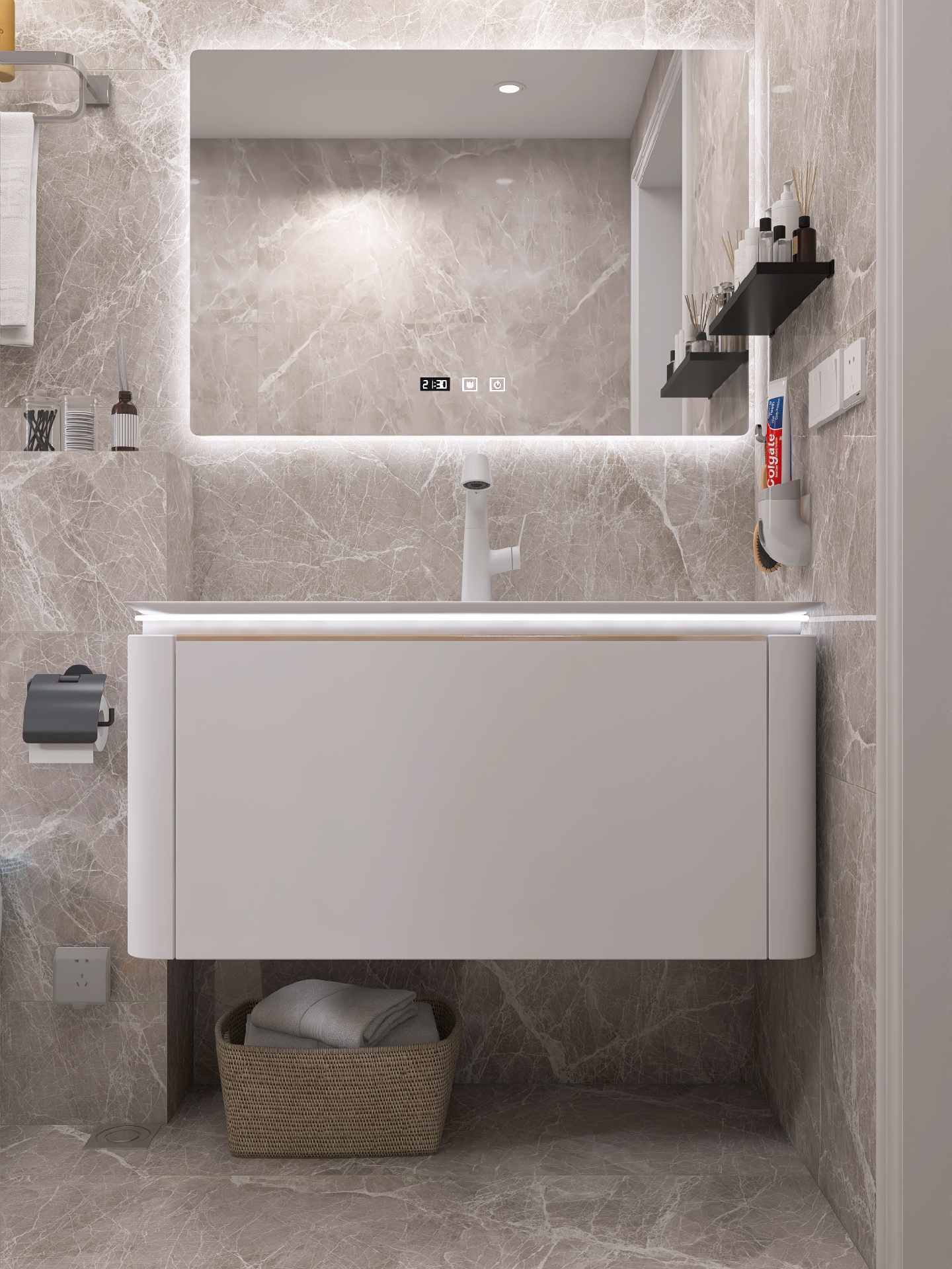选了蔡妃家的一个烤漆面的大空间收纳浴室柜,卫浴界的天花板,烤漆面光滑清洁方便,大抽屉可以放置体积较大的杂物,陶瓷一体盆一气呵成颜值高,再搭配镜柜+置物架,收纳和存放的空间有多了些,湿区做了壁龛置物架,放洗护用品和装饰都可以,收纳扩容空间大。