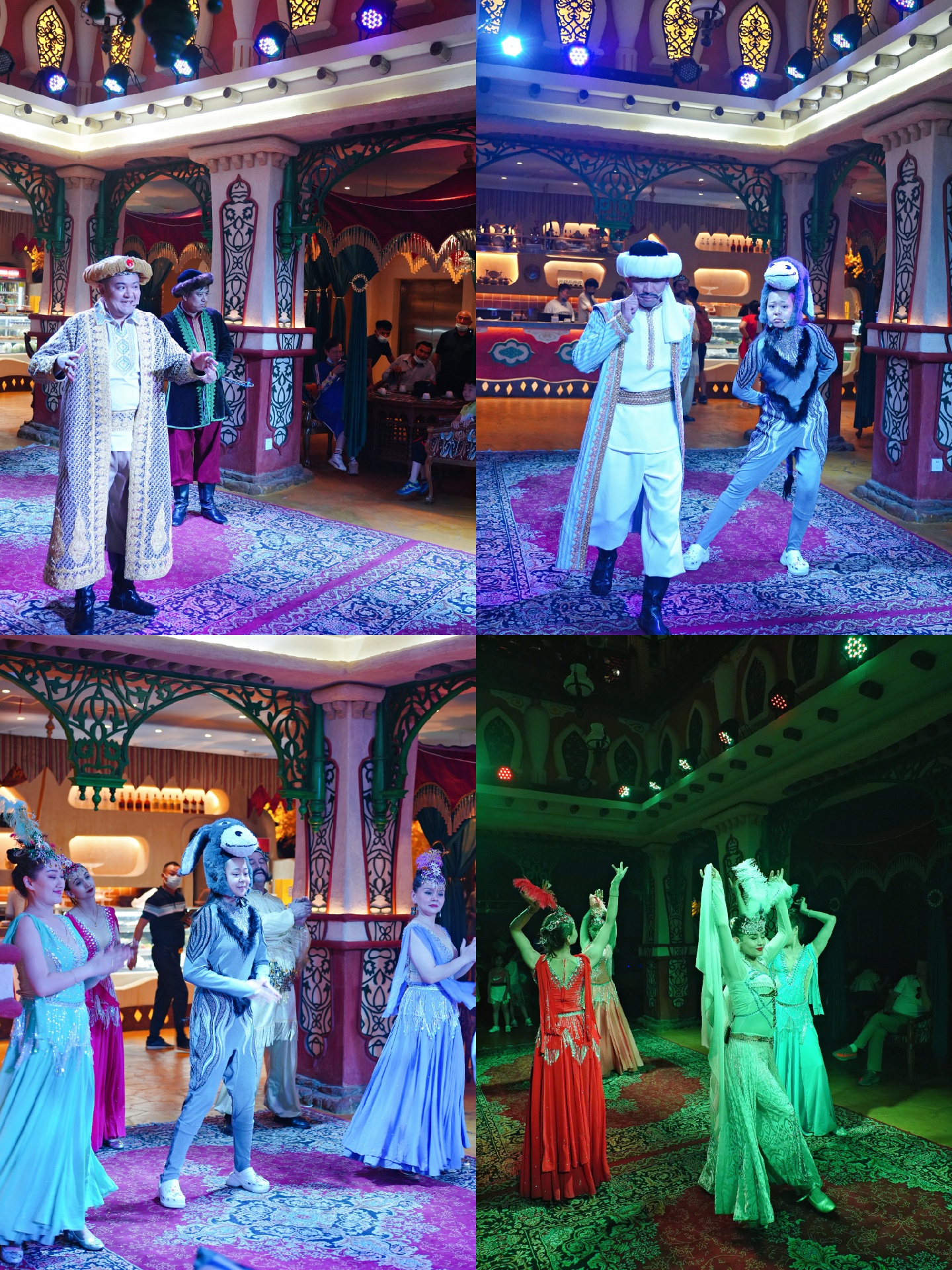 每天20:00左右,会有40分钟免费的沉浸式演出,巴依老爷、阿凡提、小毛驴、维吾尔族美女…一边吃着新疆特色美食,一边看着精彩演出,真是很愉快的夜晚。