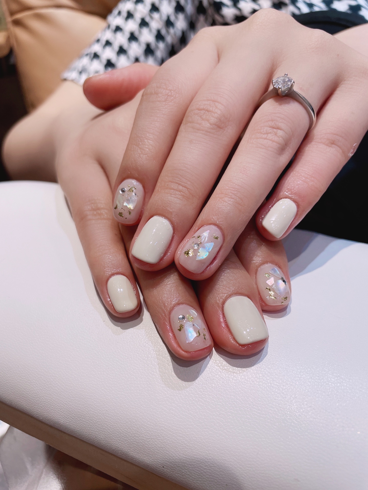 奶油白美甲,配透色奶油白,干净显白