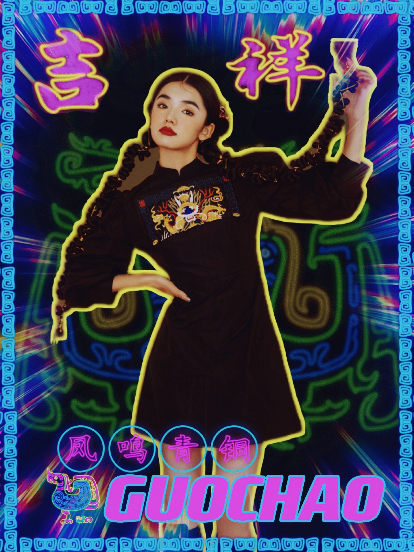 国潮风|霓虹赛博朋克风|国潮纹样|凤鸟纹|精选滤镜摄影@帆摄-美图社区-美图秀秀