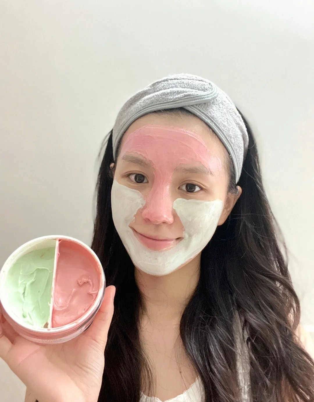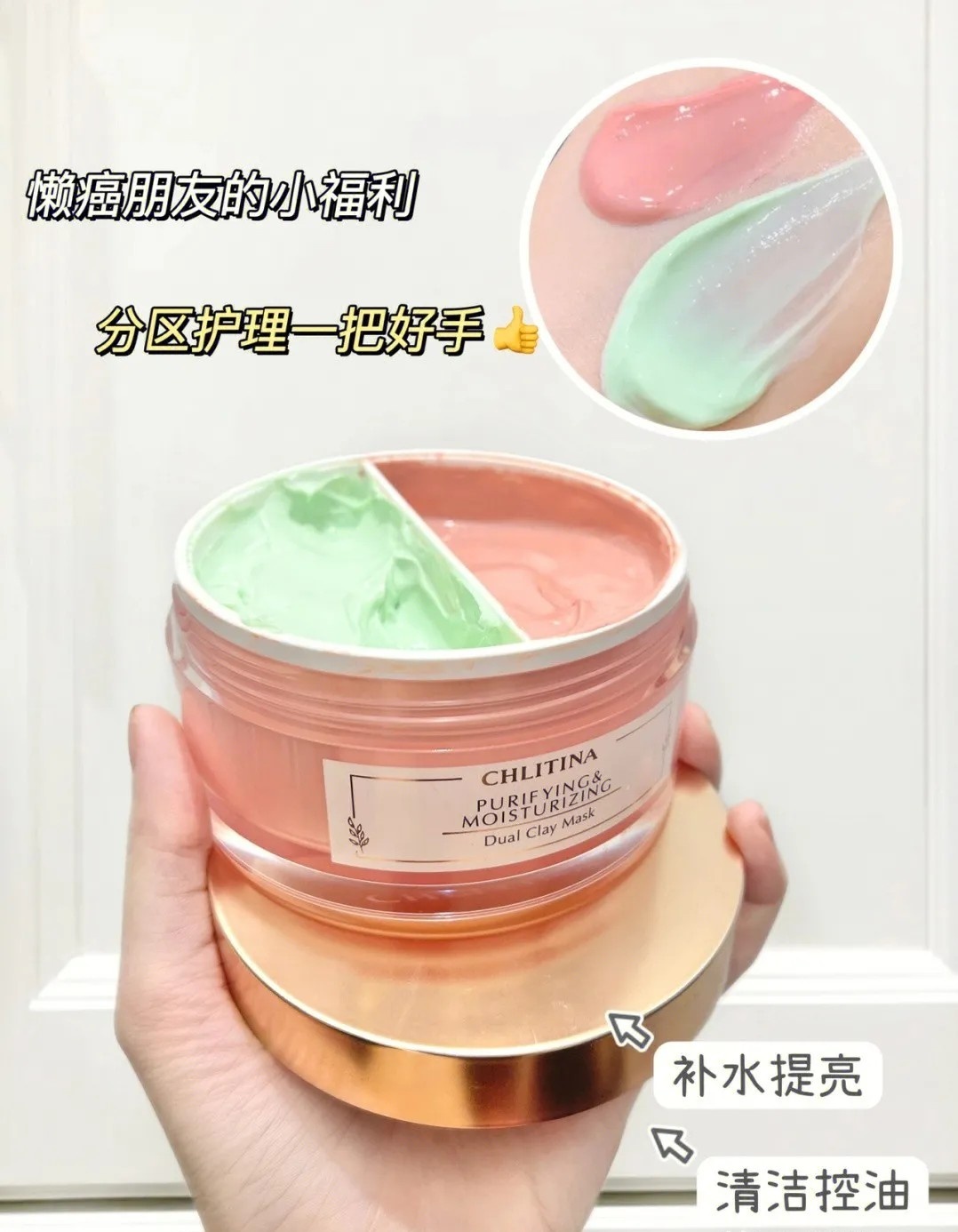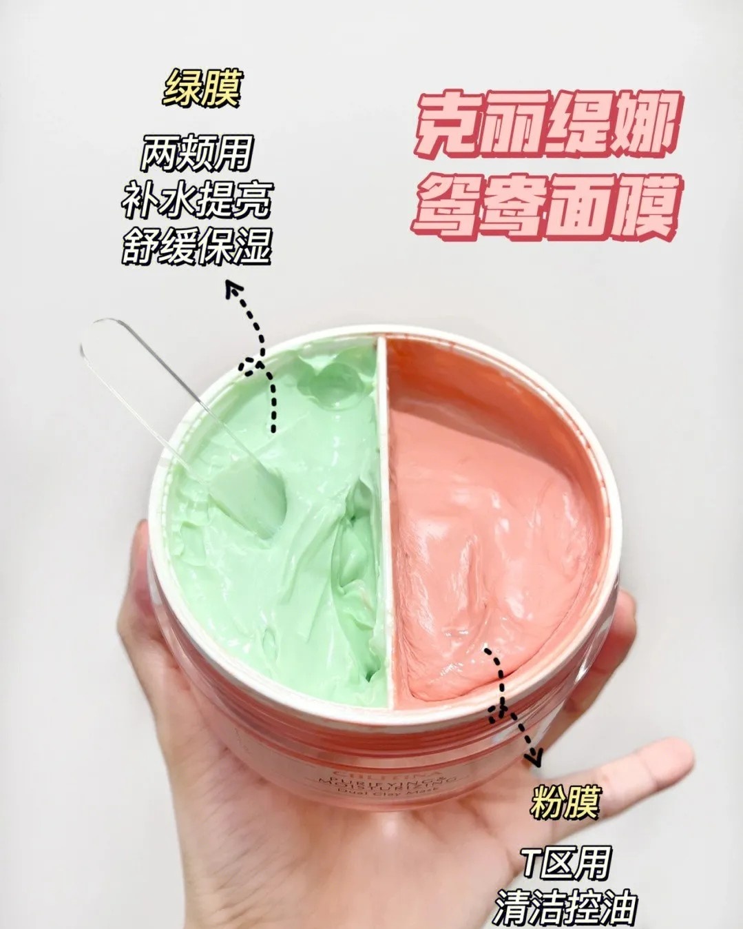 粉膜用在T区,可以清洁控油,绿泥用于U区,可以补水提亮,把分区护理整的明明白白!
