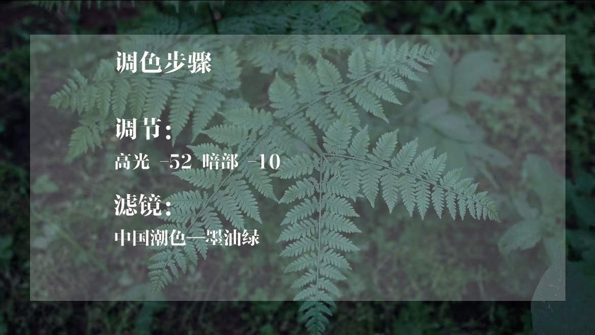 1.滤镜:「中国潮色·墨油绿」+100%;