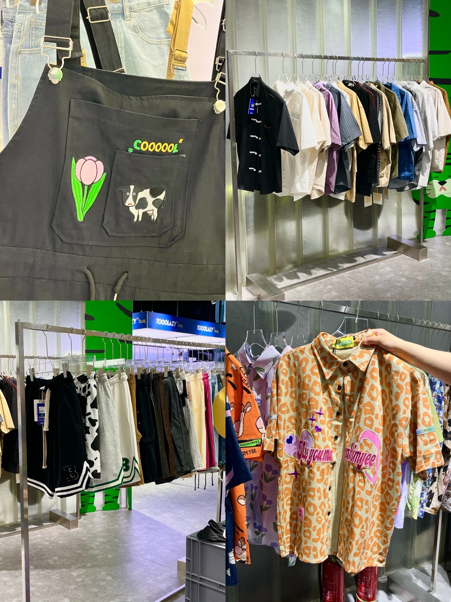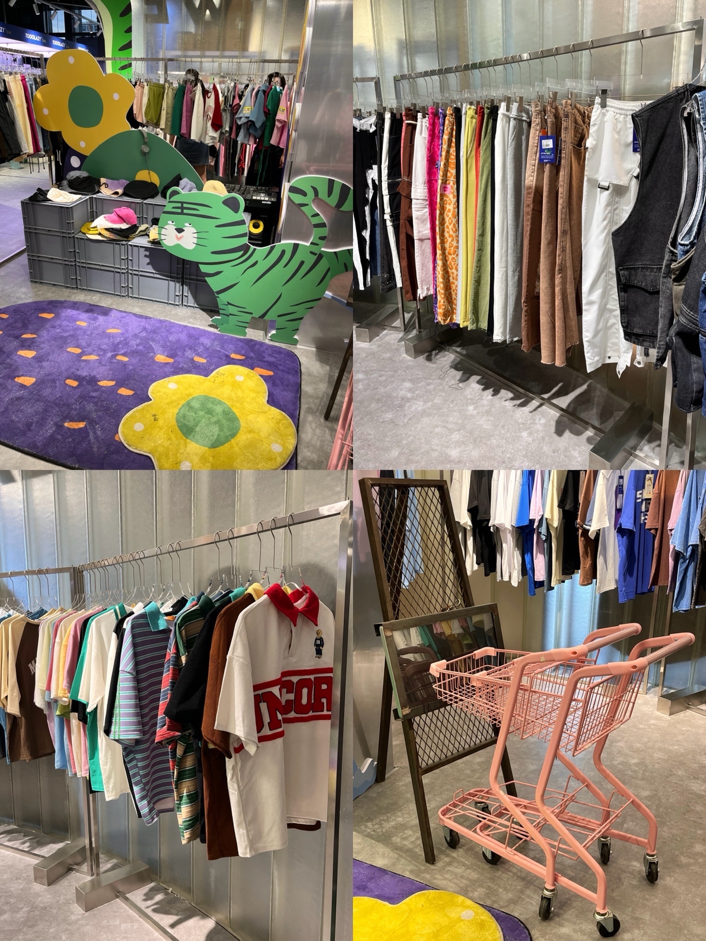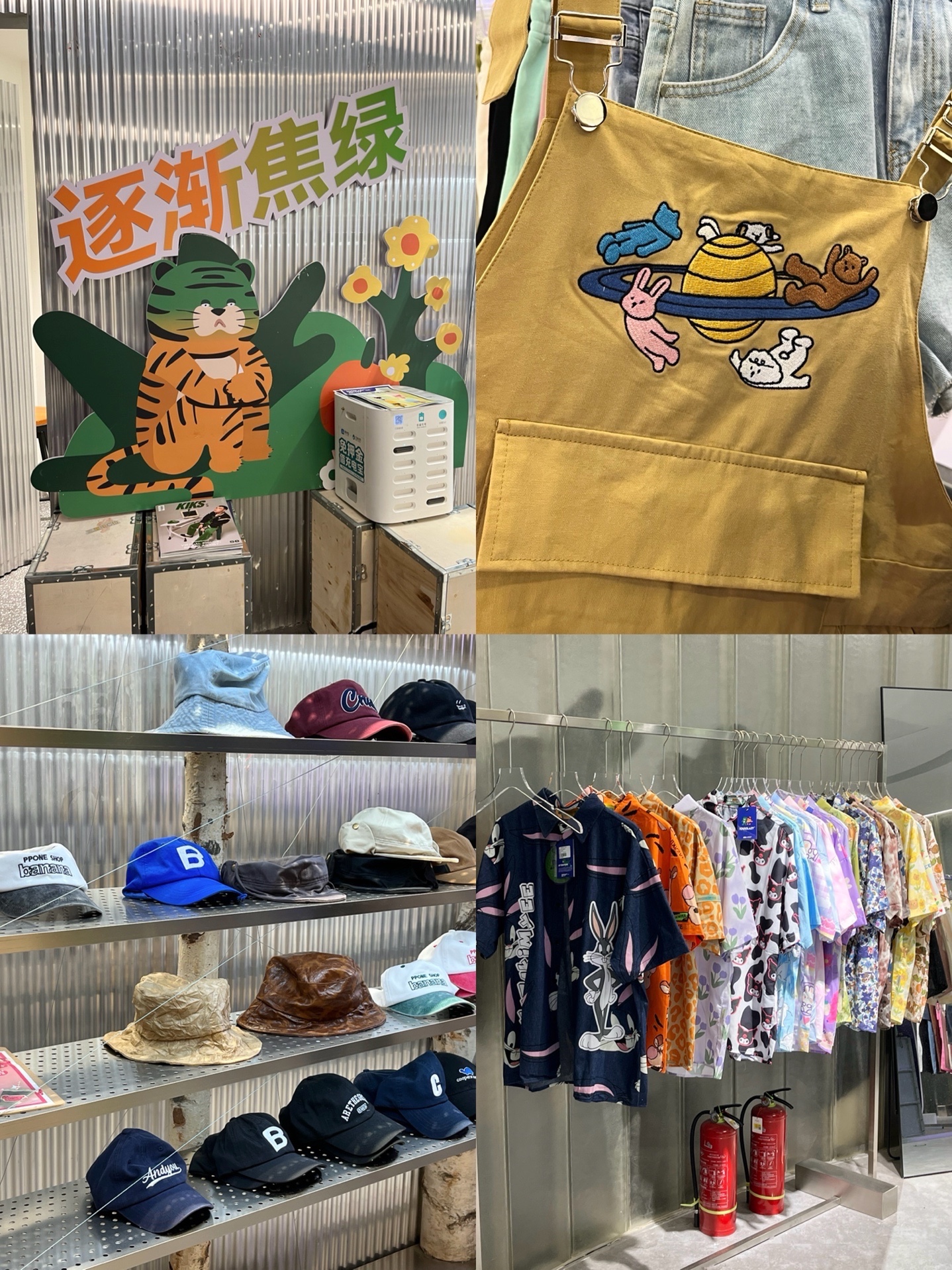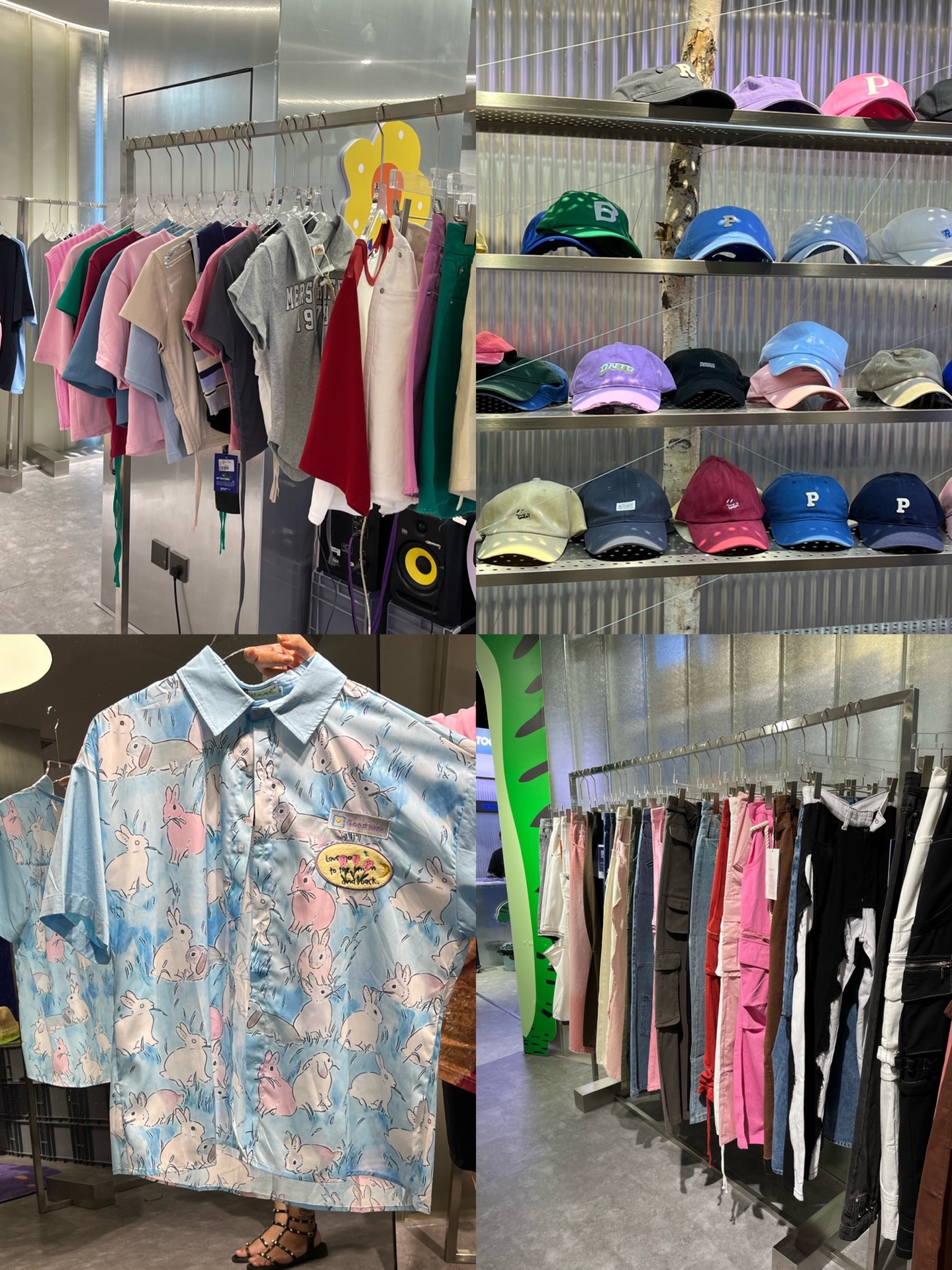 这家潮牌店真的很适合小伙伴们,超多类型的👚👖衣服种类,辣妹风、日系风、oversize ,T恤、🧢帽子、裤子等等,真的超好搭配‼非常有意思的卡通图案和衣服被巧妙设计在了一起,