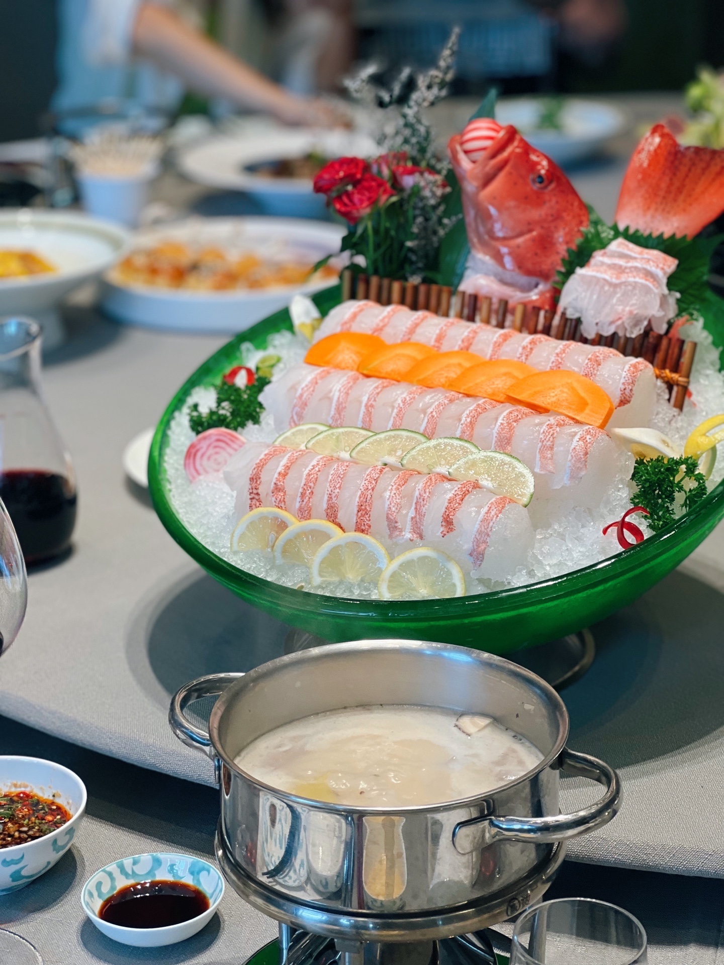 朋友聚餐商务宴请太有排面了!上海洋房火锅原班人马打造,占据南湖观景绝佳之地✨宴飨✨低调奢华!数小时熬制的秘制锅底搭配花胶,广东清远走地鸡,汤底浓稠鲜美滋补养颜。和牛刺身奶香浓郁唇齿留香,顶级和牛🥩,霜降和牛肉鲜甜多汁。海鲜拼盘,东星斑吃出原汁原味的鲜!包间私密五星🌟服务宴请天花板!