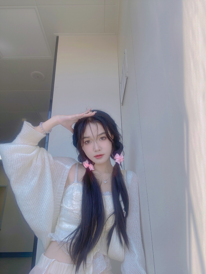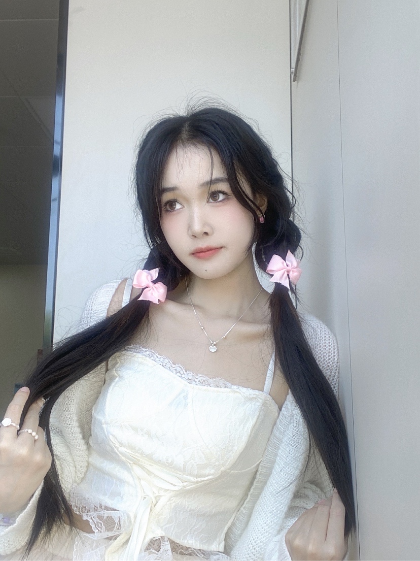 今日份穿搭米色系 半麻花辫双马尾➕粉色系蝴蝶结尊滴很🉑️