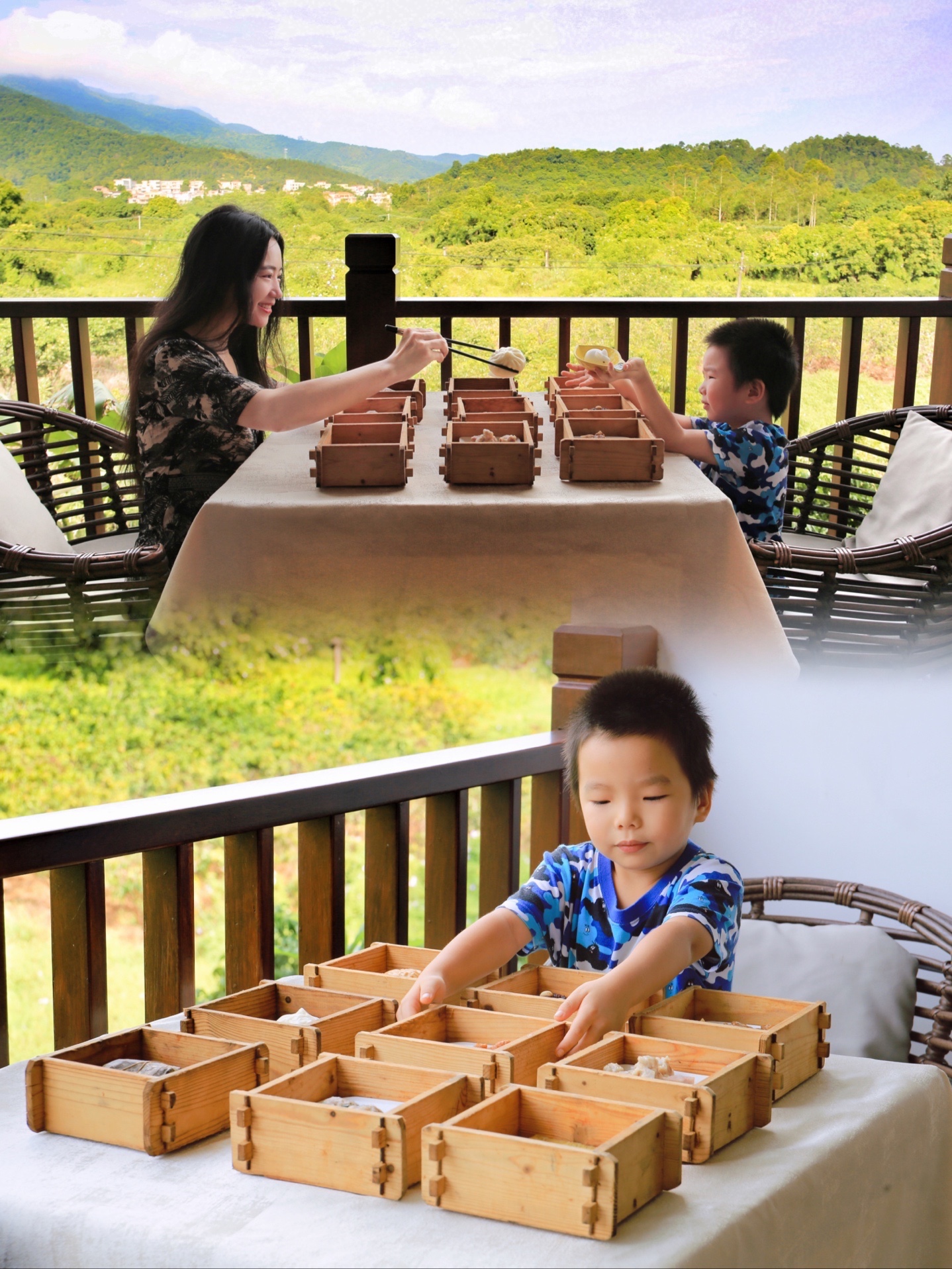 田园阁自助早餐是含在客房套餐中的,不仅有自助餐食,还有丰富的现做粤式茶点,任取任吃,相当实惠。映衬着湖光山色,和娃一起吃一顿名副其实的九宫格早餐,以愉悦的心情开启新的一天~