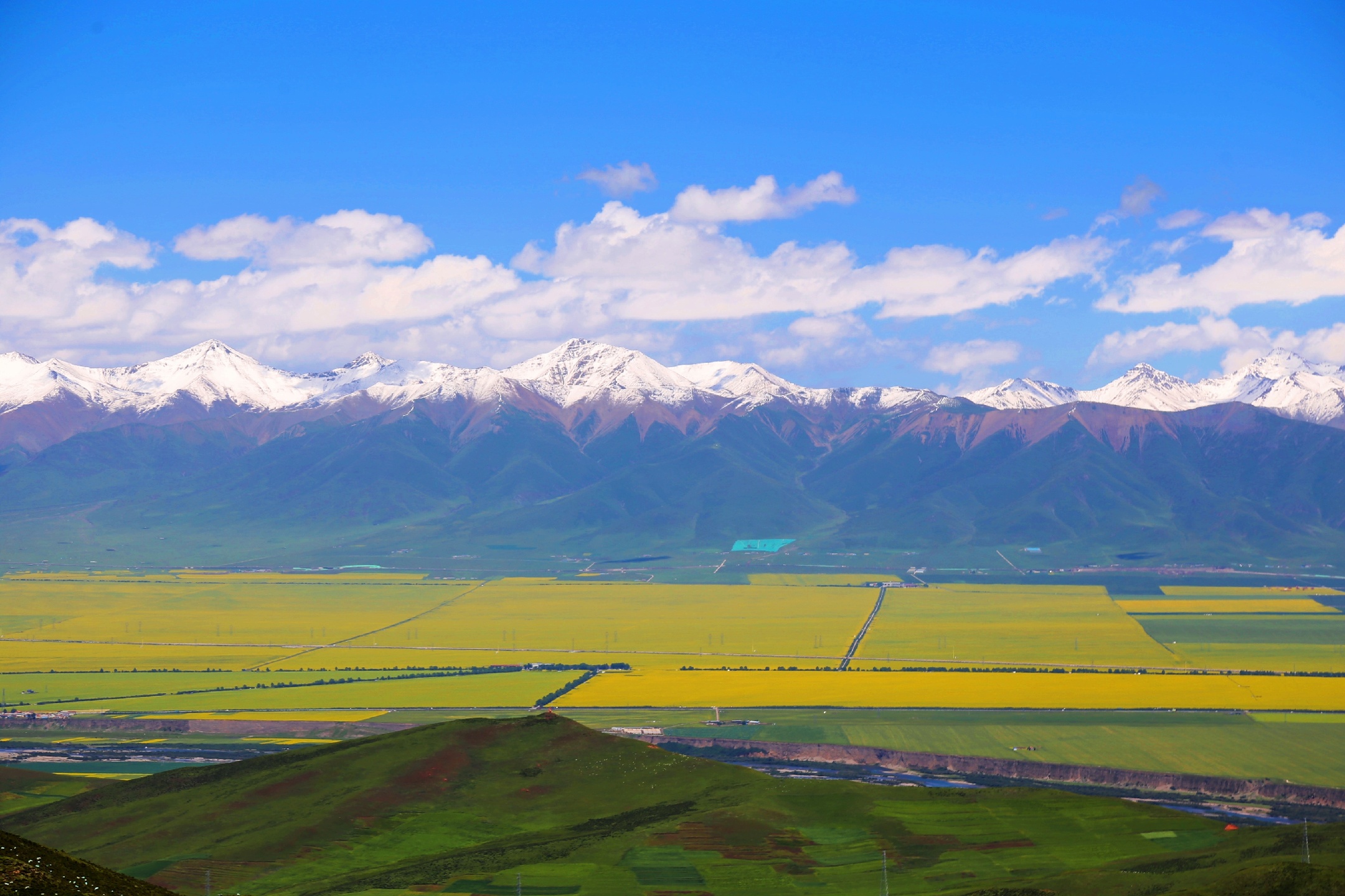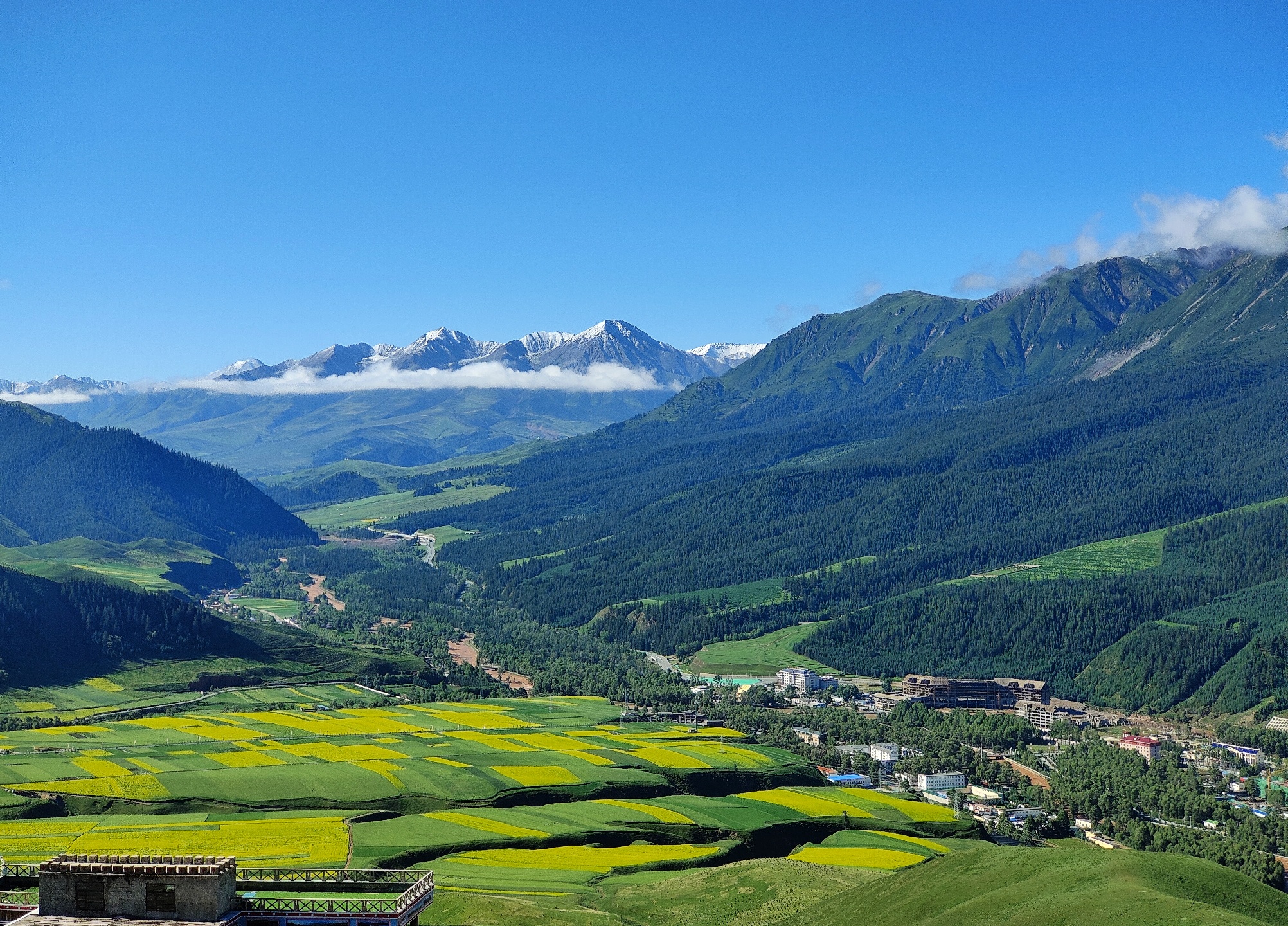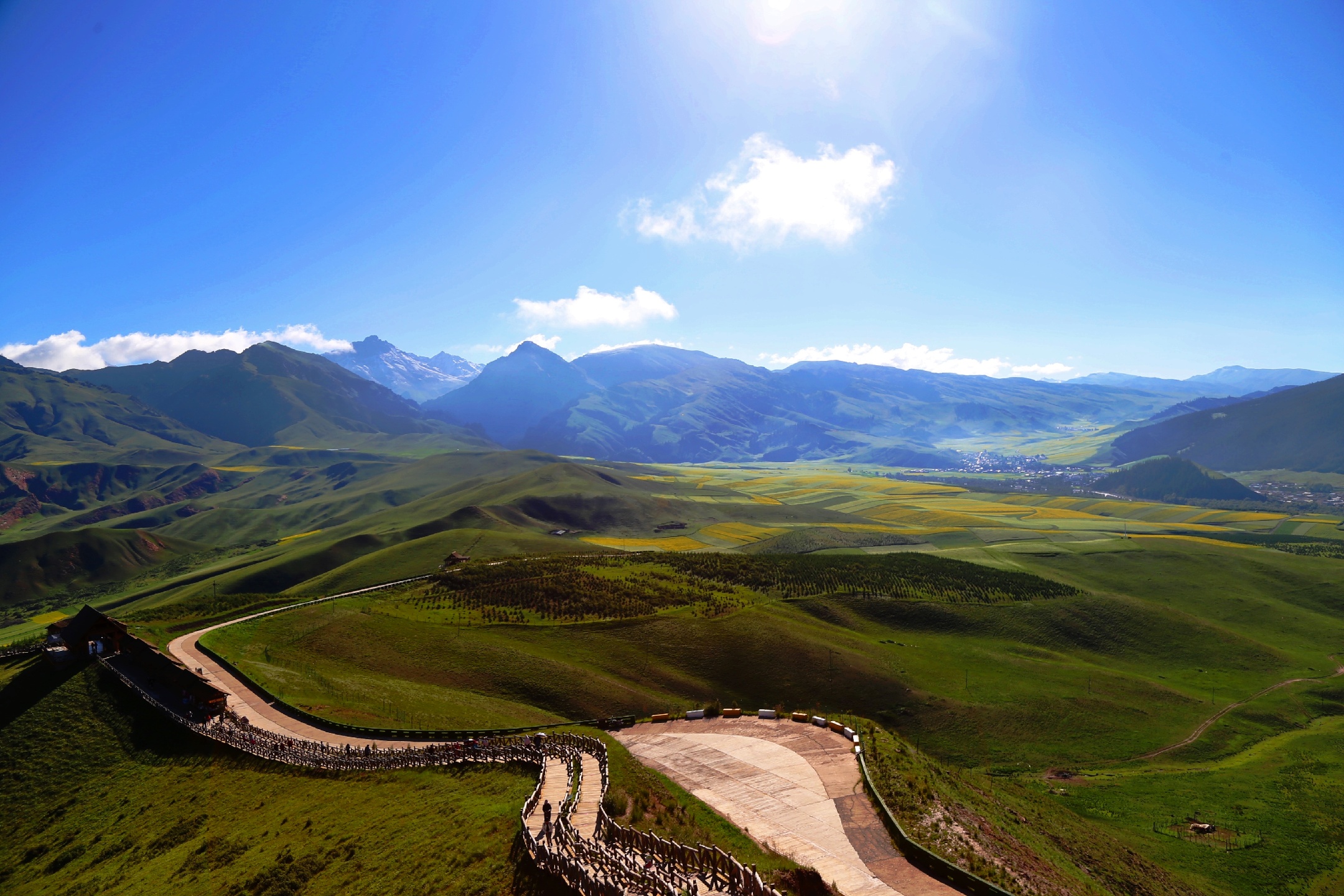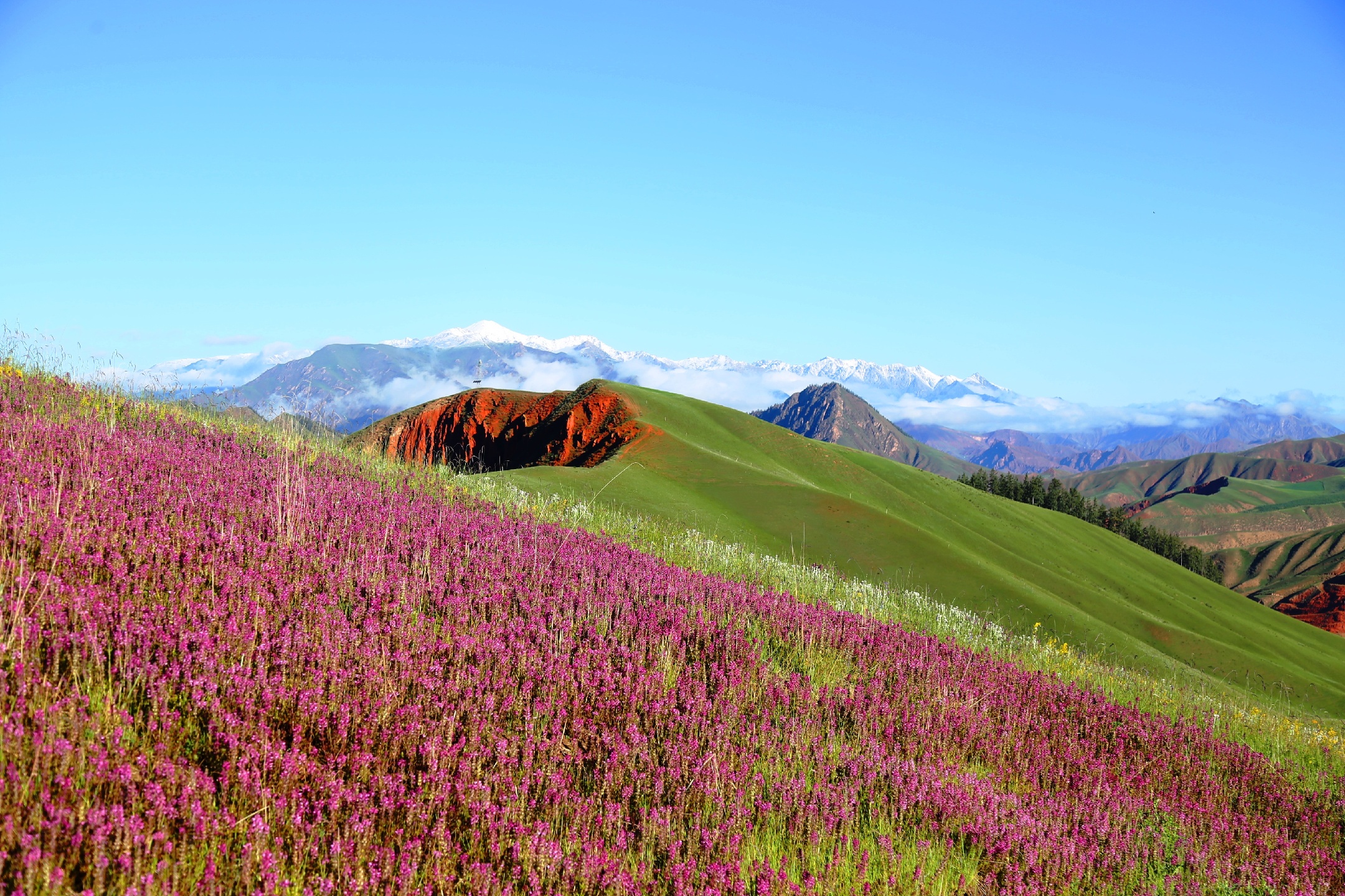 大美青海,连绵卓尔山脉像一块彩色画布,白色雪山绿色青山黄色油菜花红色岩土层层叠叠,俨然像一幅精美的油画,美不胜收!站在卓尔山顶视野极度开阔,山对面是一山尽览四季景色的牛心山,左右两侧分别是拉洞峡和白杨沟风景区,背面是连绵起伏的祁连山,山脚下滔滔八宝河像一条白色的哈达环绕在县城周边。处处美景,宛如仙境,令人心旷神怡。