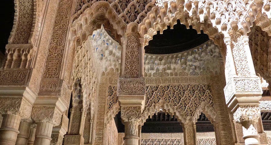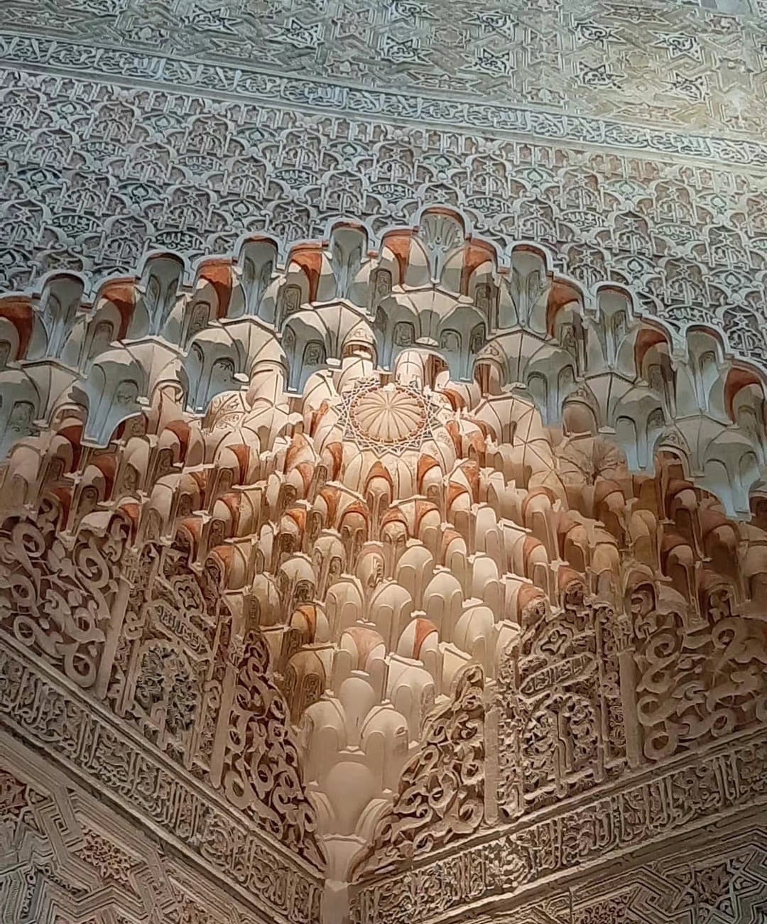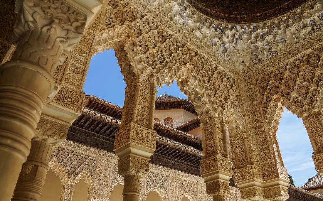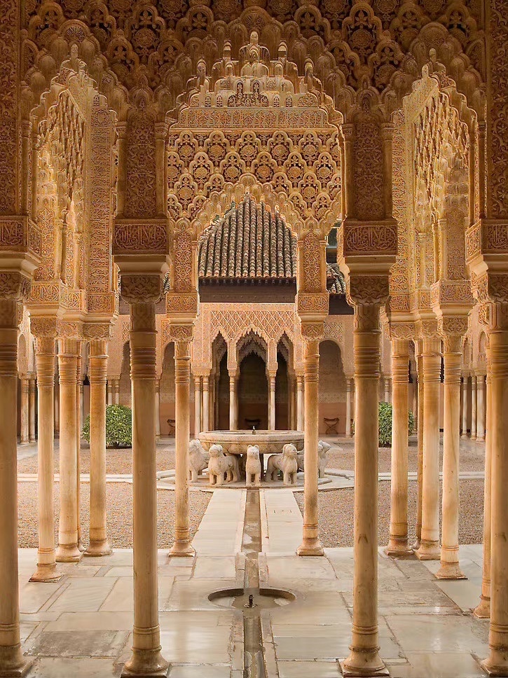 西班牙格拉纳达的阿尔罕布拉宫 除了走过一个又一个的花园 只记得当时在这狮子厅里 抬头看了很久很久 想把每个角落深深的印入心里 在这样磅礴精微的美面前 丧失了语言的能力