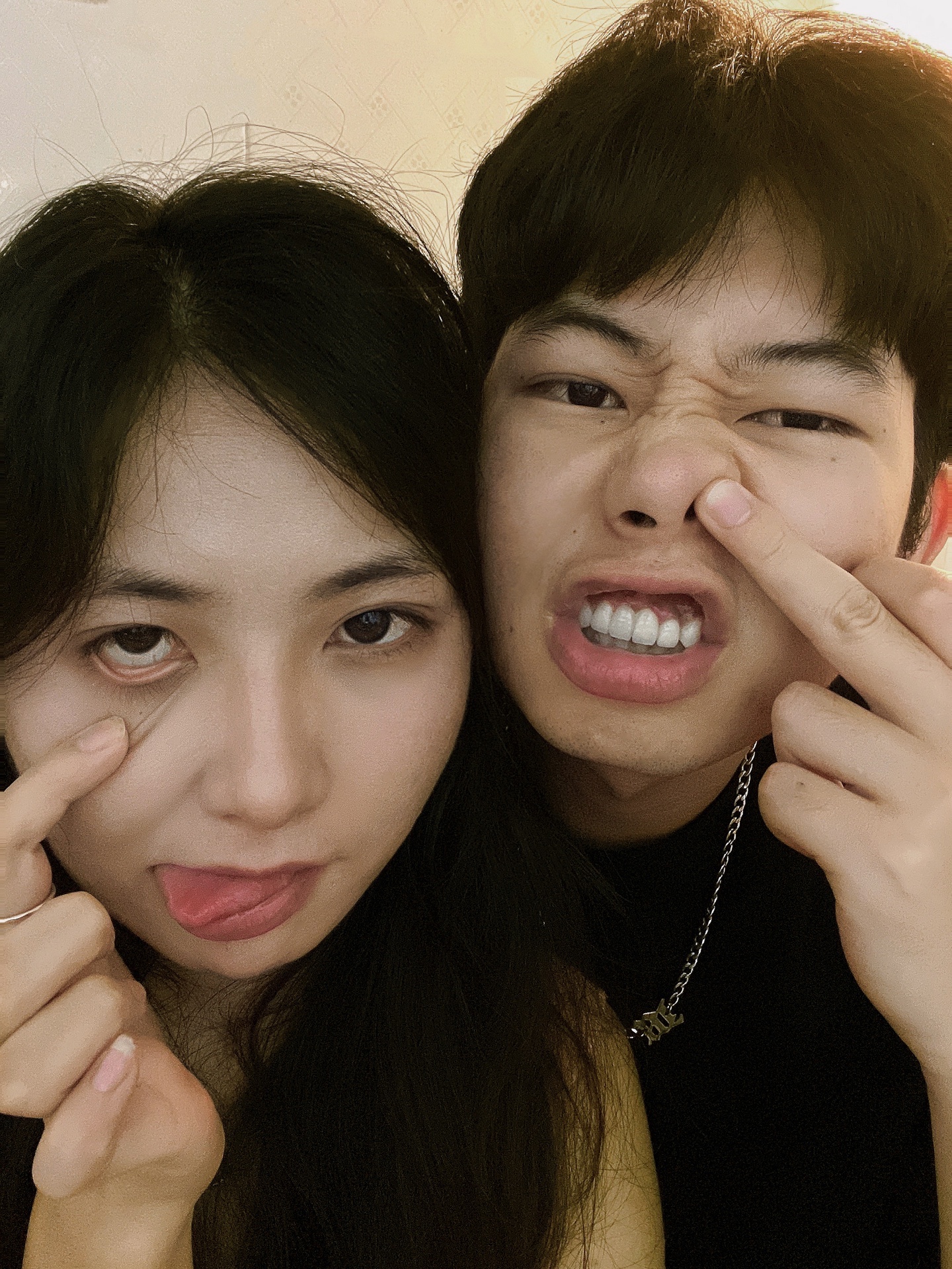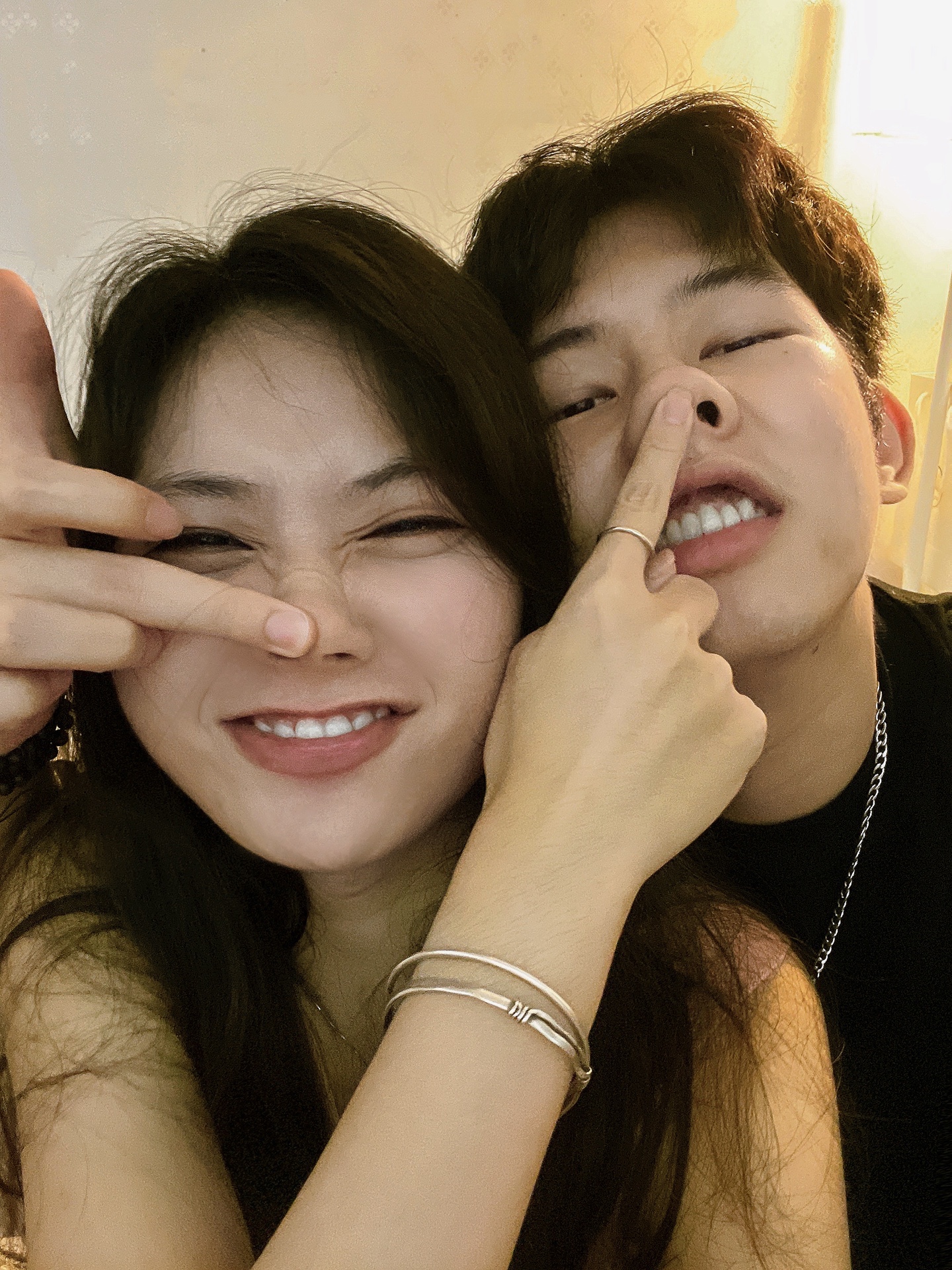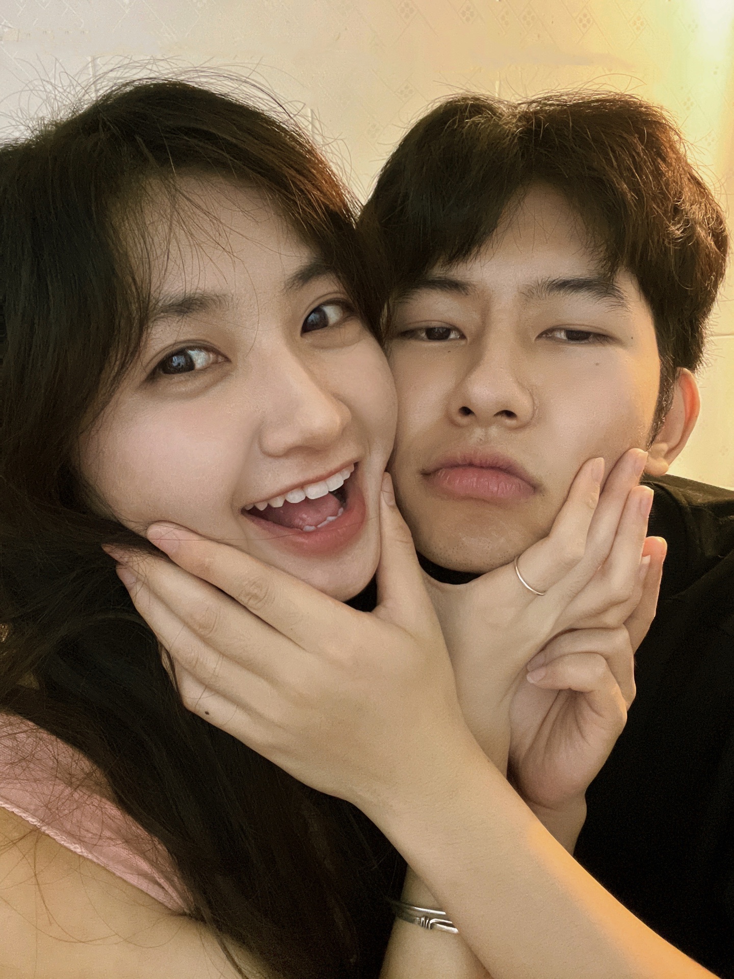 情侣拍照姿势/情侣宅家搞怪大头照