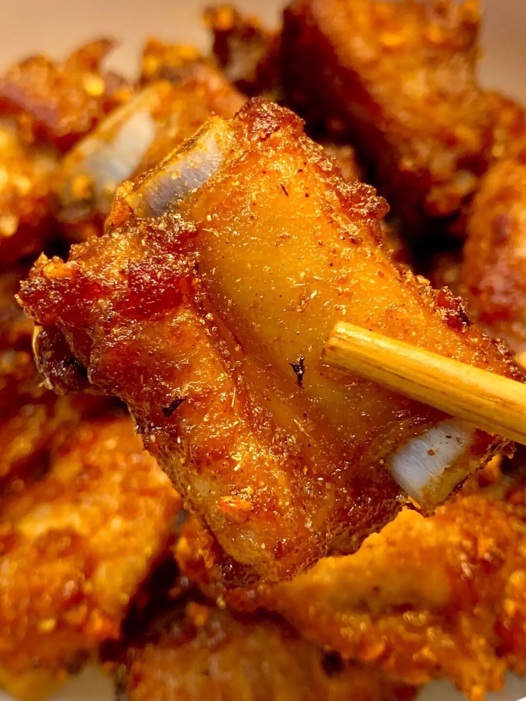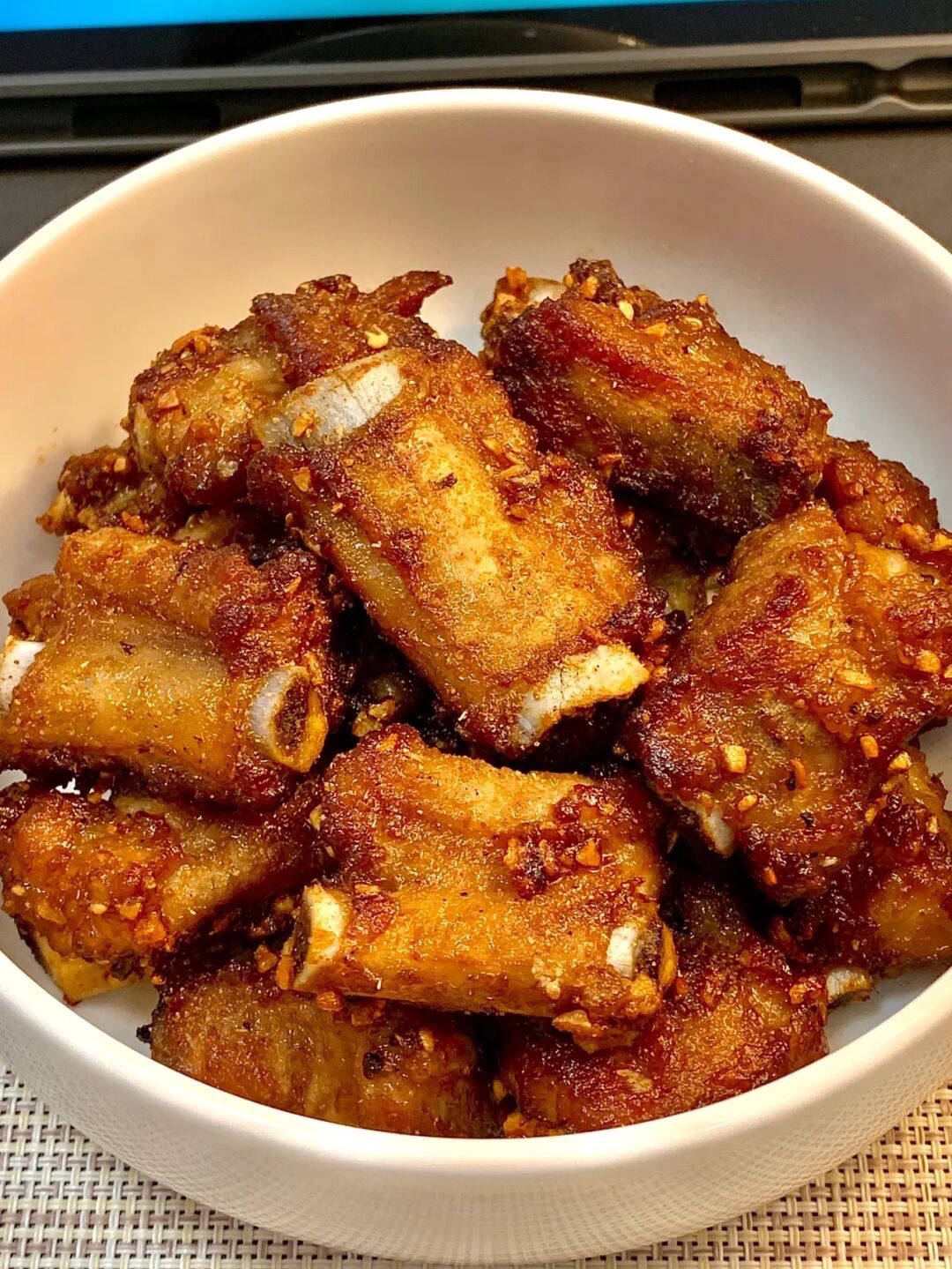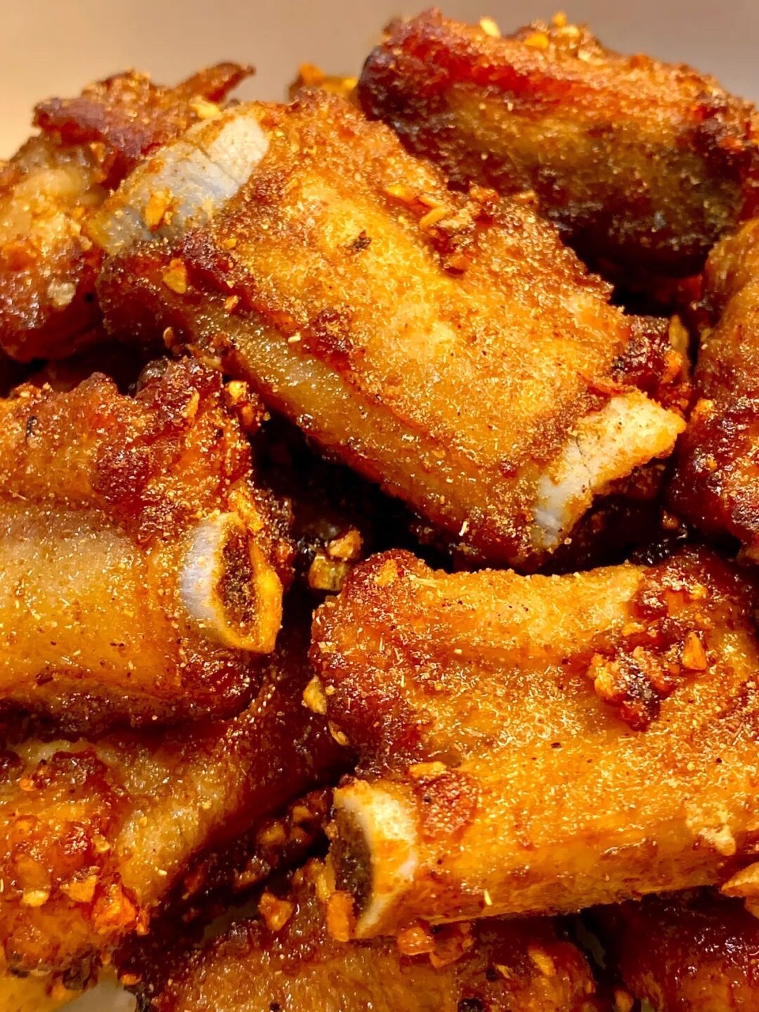 🍖这么做出来的排骨外酥里嫩,蒜香味十足,撒上椒盐粉好吃到吮手指,一斤根本不够吃,家里人多的记得多准备一点哦😄😄