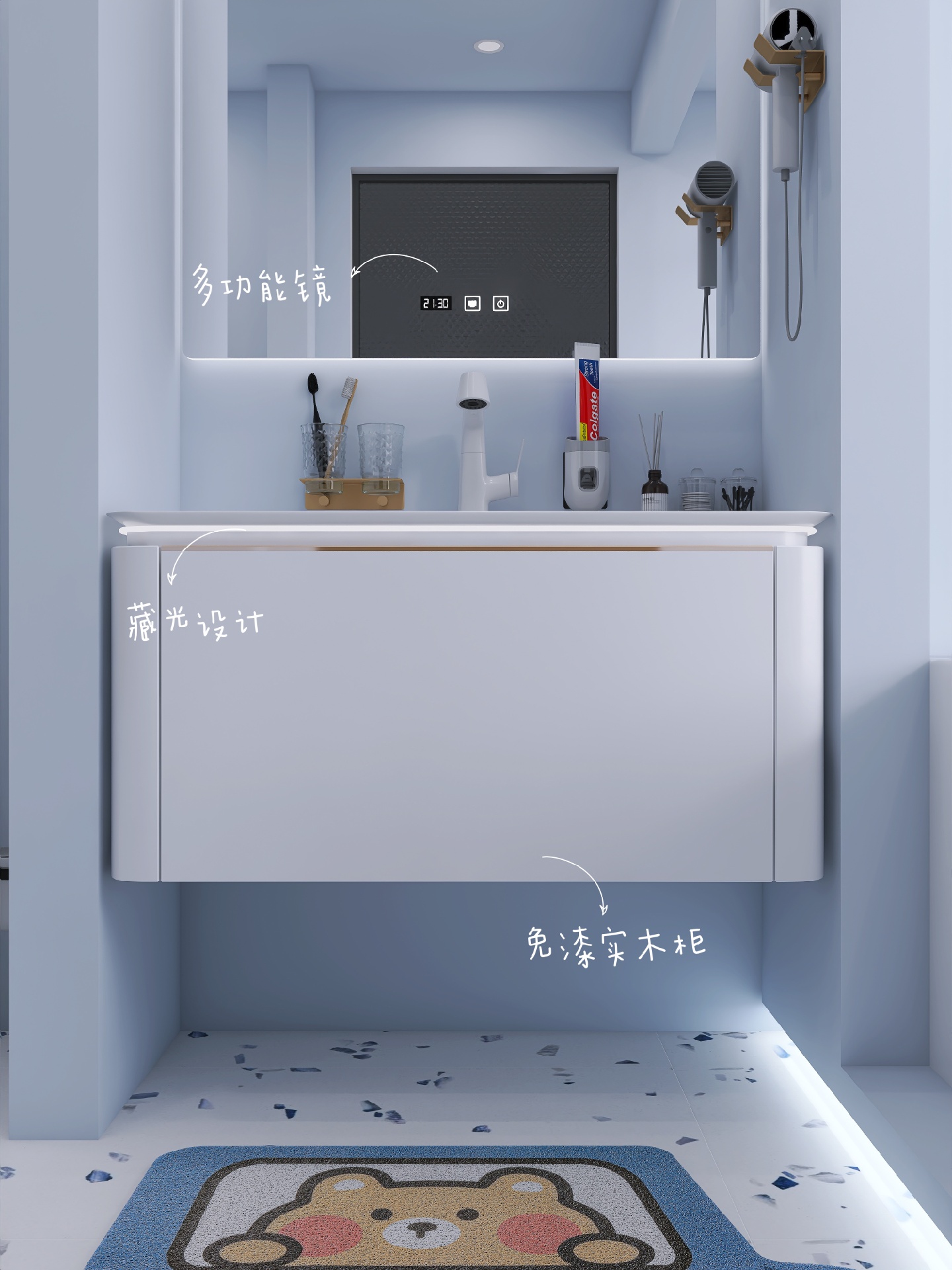 卫生间瓶瓶罐罐的小杂物会比较多,选个好浴室柜,方便收纳也可以提升浴室颜值。