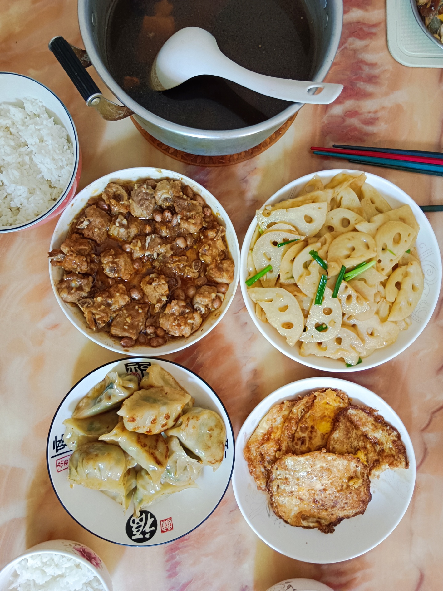 葱花鸡蛋牛肉➕海鲜煲➕土豆排骨➕肉丸➕自己做的苦瓜酿肉➕炒的跟大排档有得一比的炒米粉➕与家人的一餐➕我的拿手菜可乐鸡翅,超好吃,舍友可以吃两碗饭➕自制西米奶茶