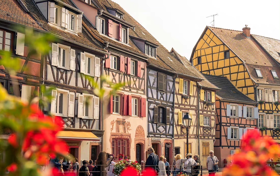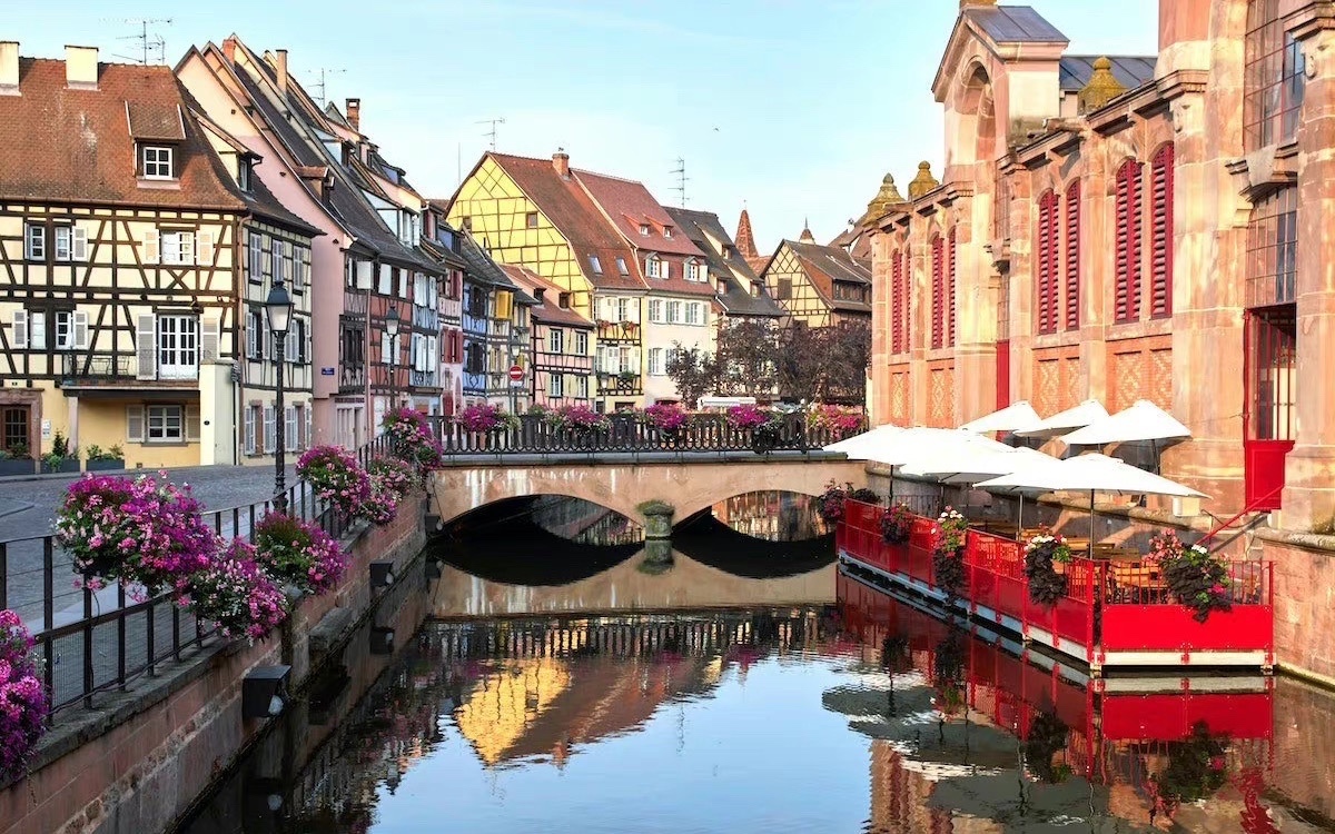 法国 Colmar 科尔马童话般的木筋屋 像穿越进 哈尔的移动城堡 的童话里 每一处建筑都适合作为背景自拍 蜿蜒的河流 悠闲的游船 以及不远处高耸的圣马丁教堂 这画面美好极了