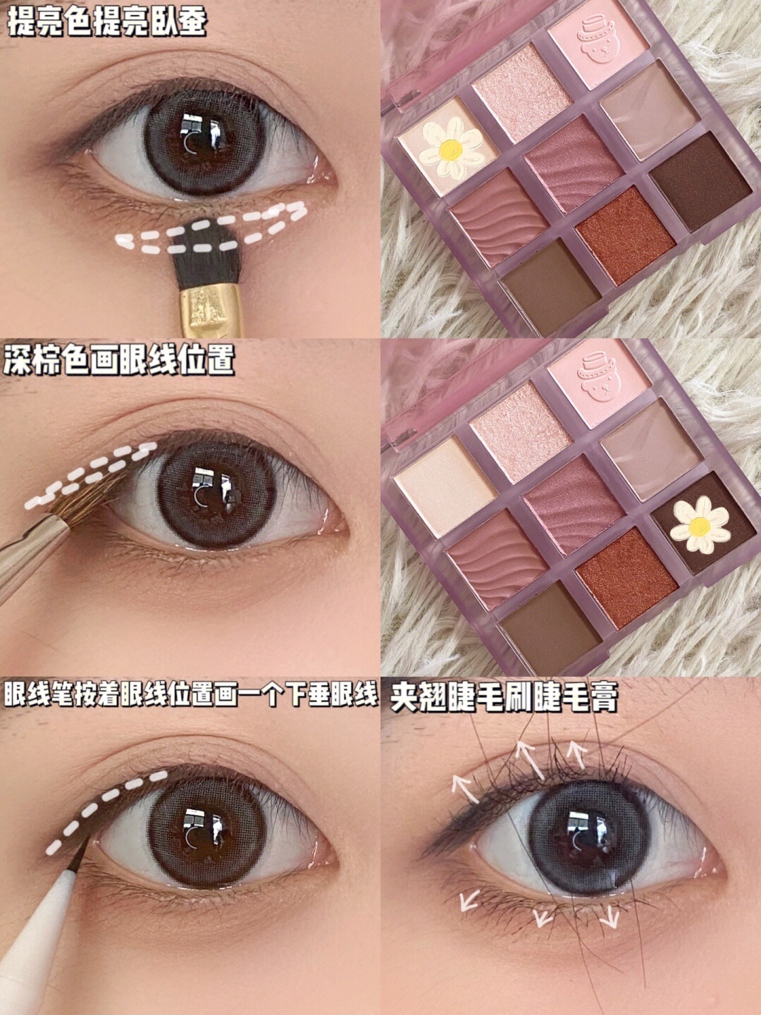 粉色系眼影和长睫毛提升氛围感!下垂感眼妆无辜感满满!非常简单新手宝贝也可以画