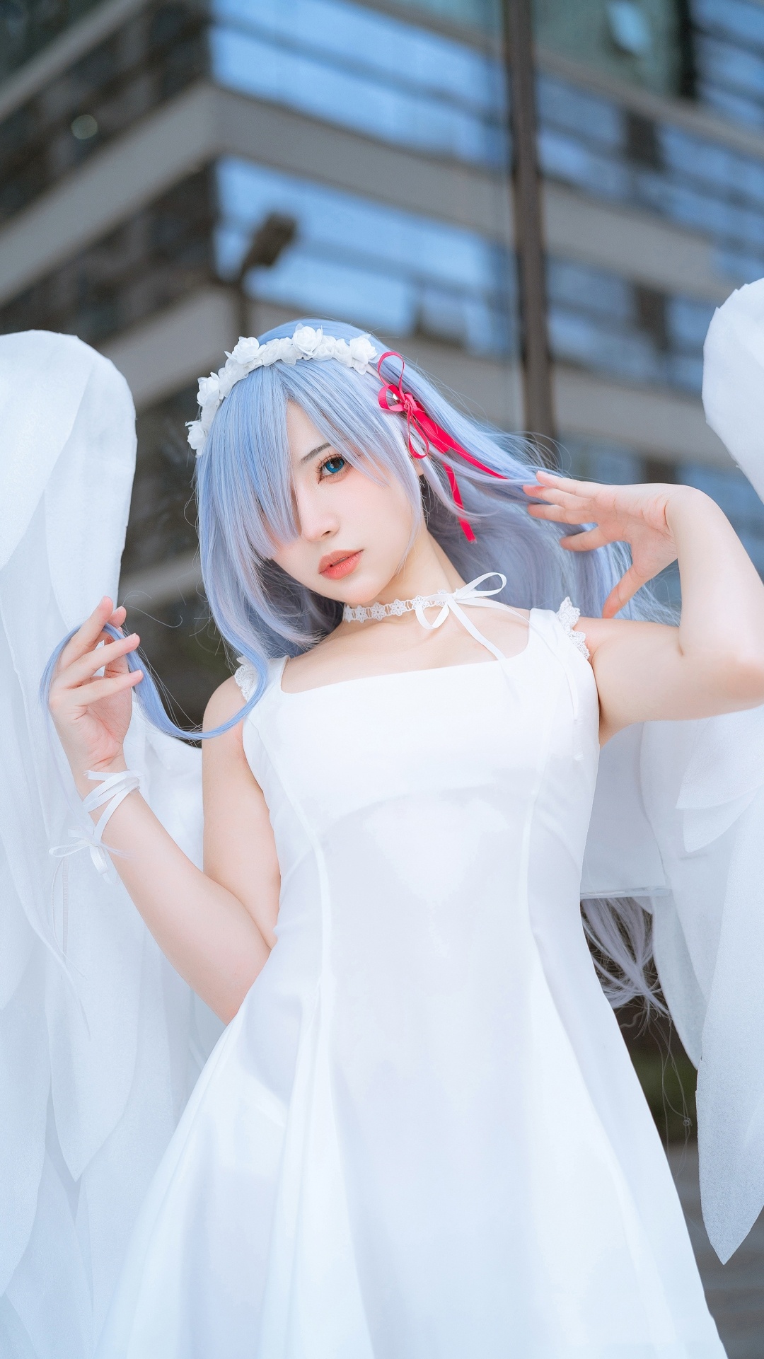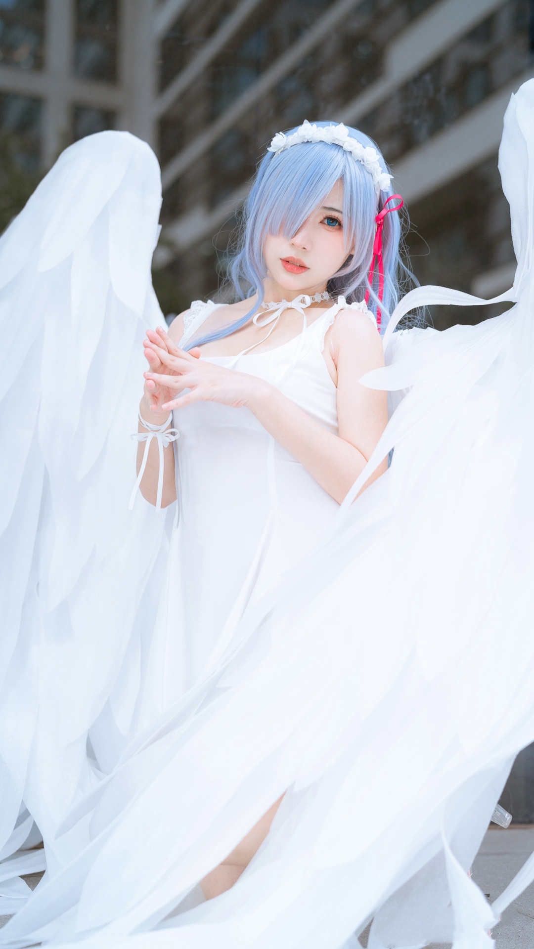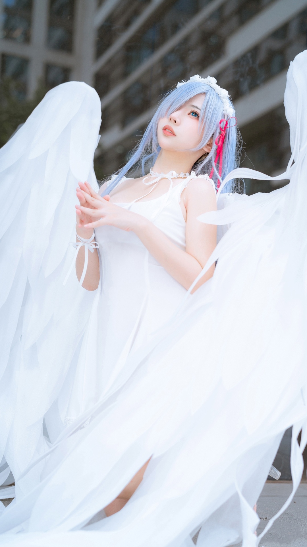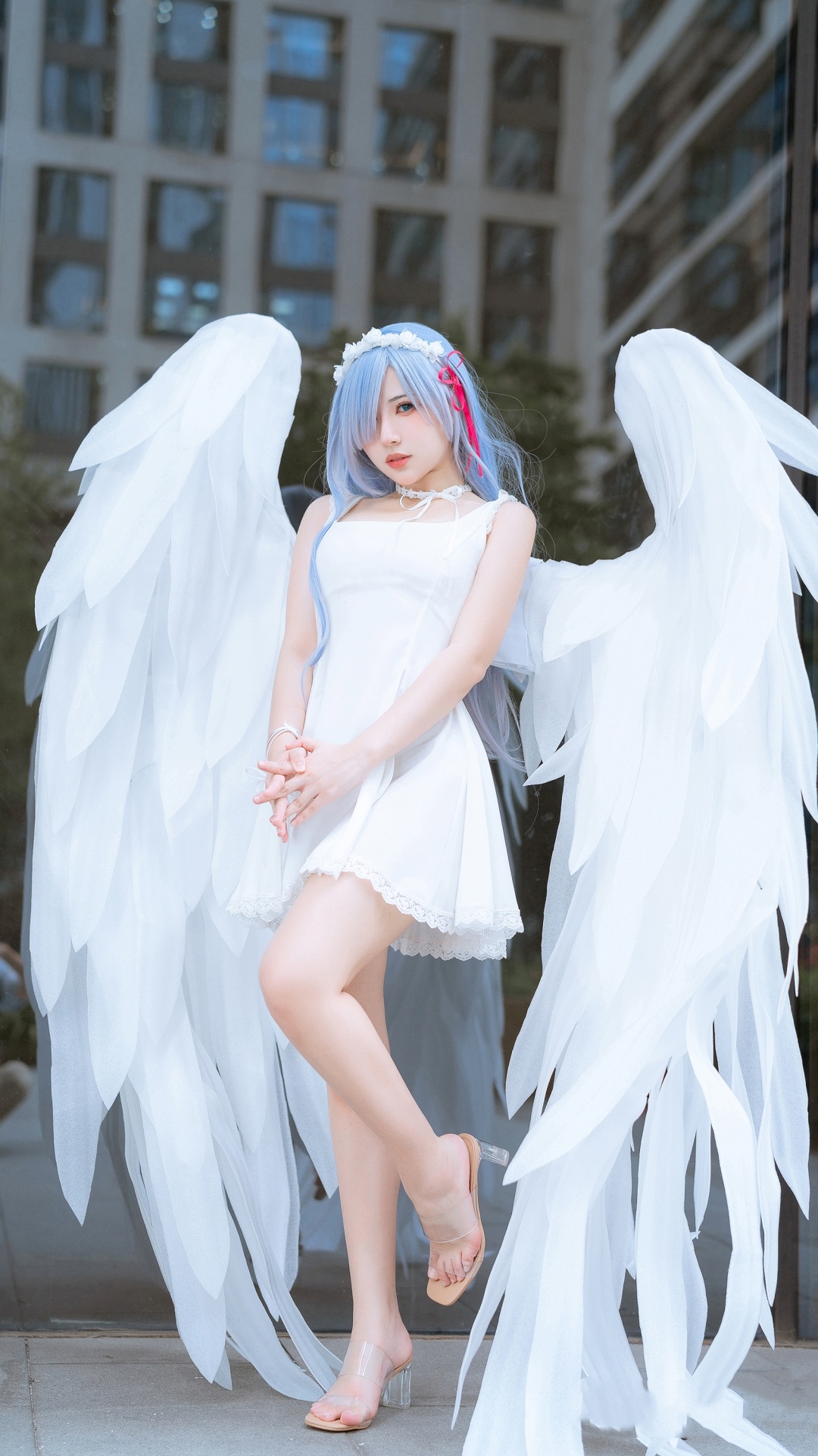 cos:天使蕾姆场照 雪白的翅膀特别迷人