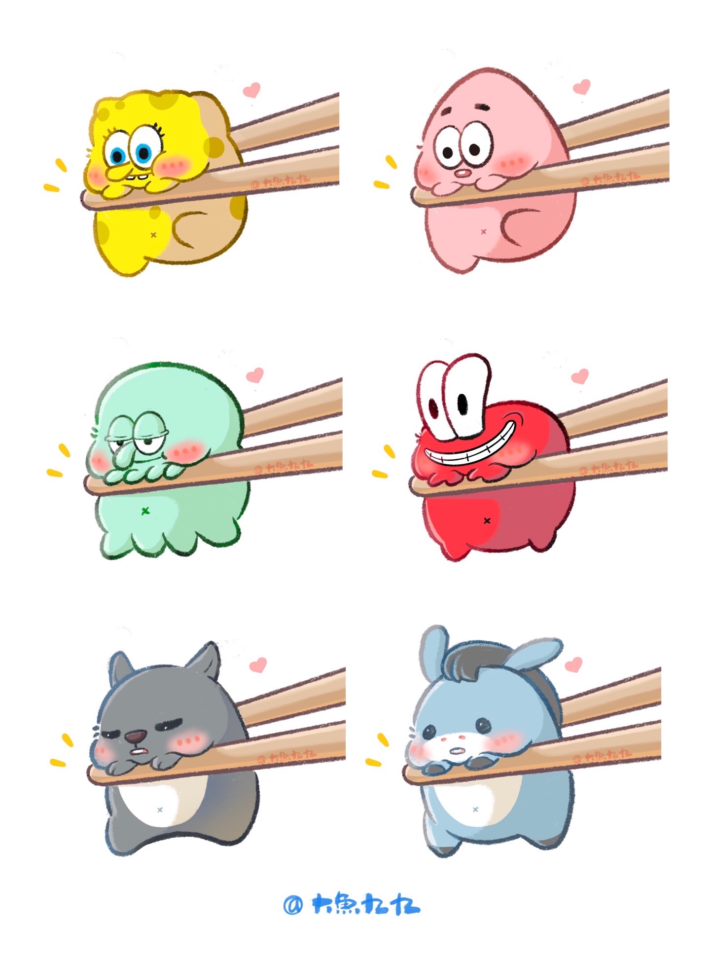 海绵宝宝和他的小伙伴也被夹住了,快来rua这些小可爱