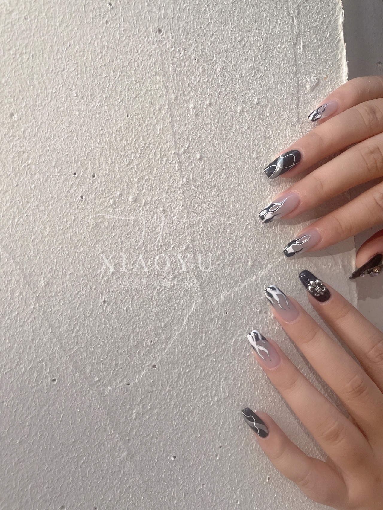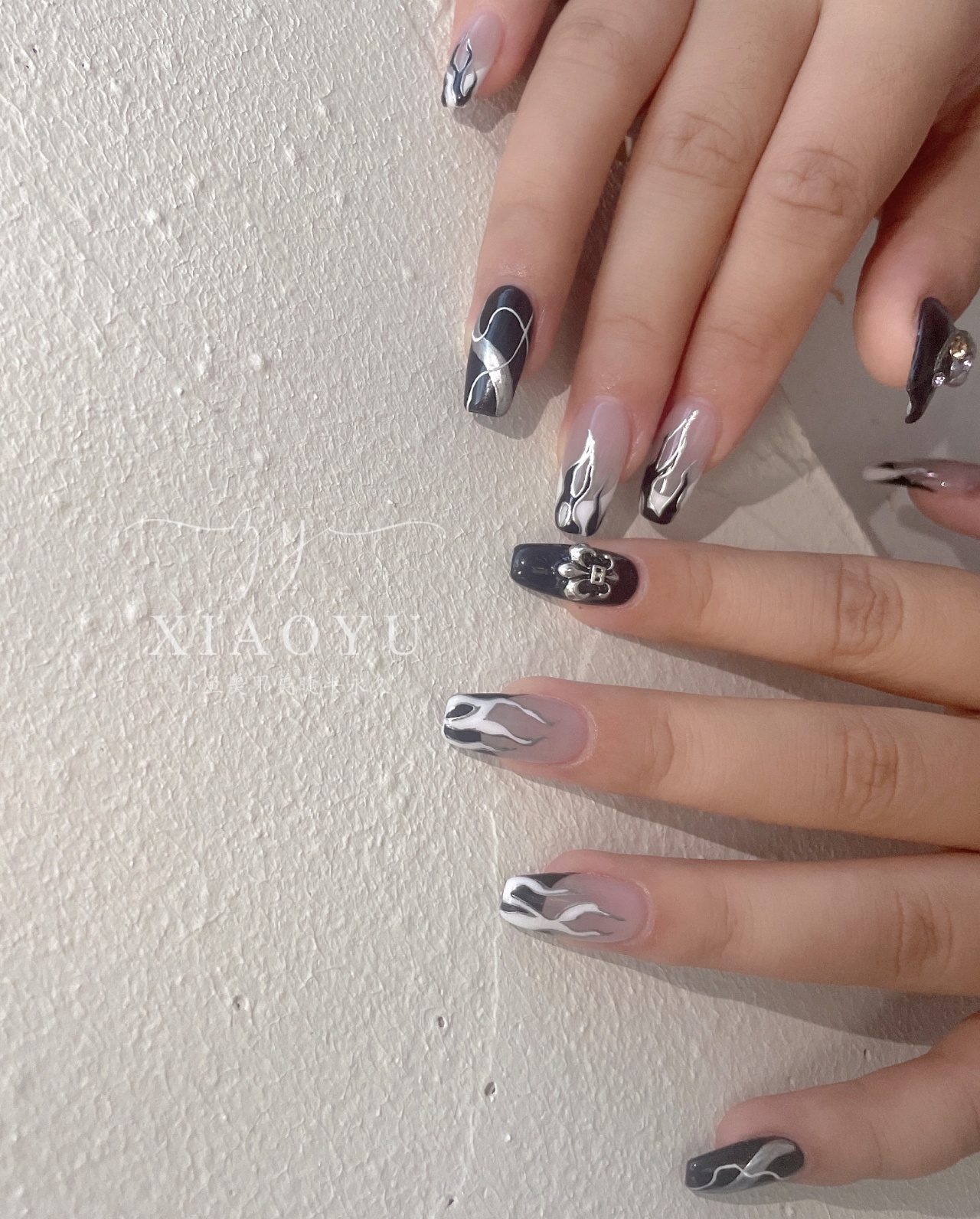 黑色火焰+克罗心美甲😍