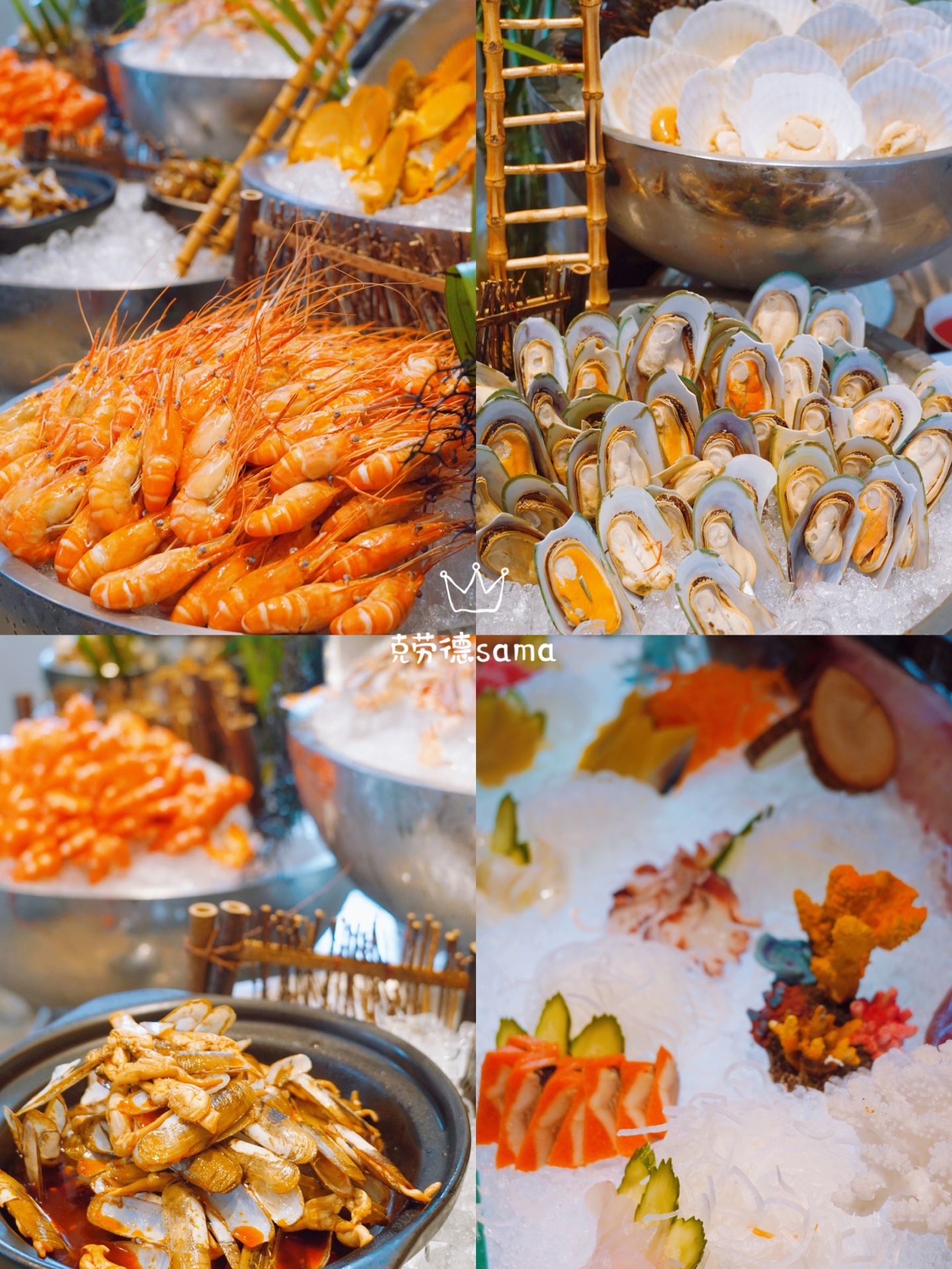 🥁各款海鲜也海量供应,吃不惯寒凉海鲜可以取去明档请厨师加热,刺身寿司档也非常受食客追捧,排队取食者众🍣🍣🍣