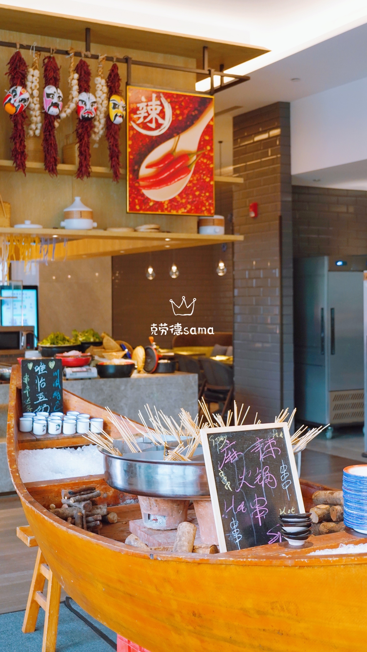 🥁餐厅现阶段举办「川渝美食节」,麻辣小龙虾、毛血旺、辣子鸡等知名川渝系菜品齐刷刷上阵,各款串串连同豆奶专门用一艘木船作容器,真是C位待遇,值得嗜辣之人为之狂欢😛😛😛
