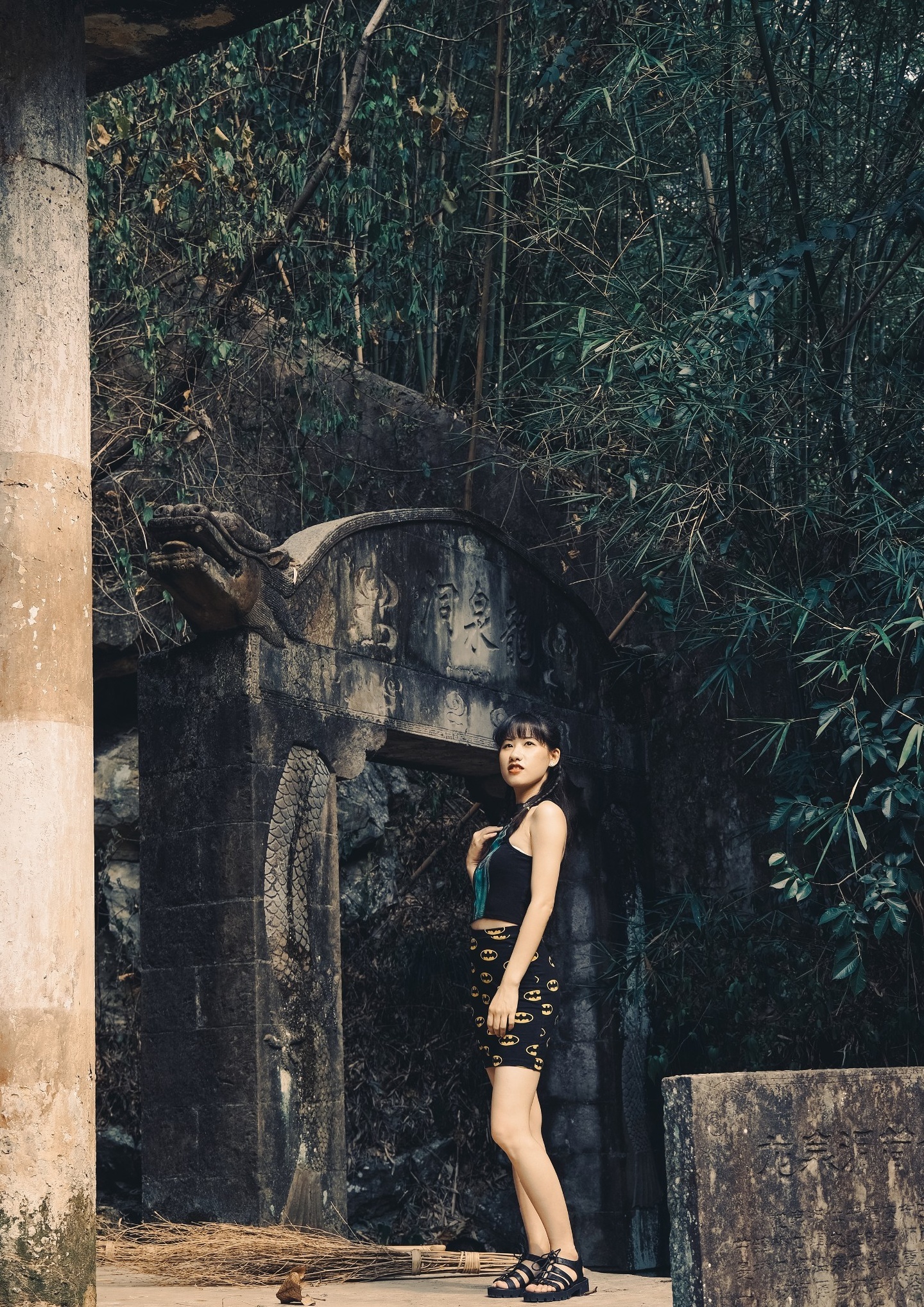 出于好奇,我和Pom Pom驱车赶往一探究竟。古木苍苍🌲,溪水潺潺,村中的稻田错落有致……这座神秘的洞穴就坐落在山脚下。大门外面有凉亭,凉亭下立有石碑,刻着龙泉洞的简介,看样子应该不是什么籍籍无名的小洞。