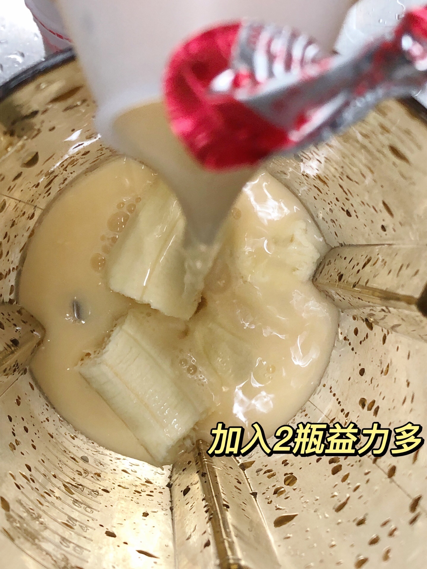 促进肠胃蠕动,有助于排便,浓郁可口,香香甜甜👩🏻🍳做法:一根香蕉🍌、益力多两瓶、纯净水适量,启动榨汁模式即可