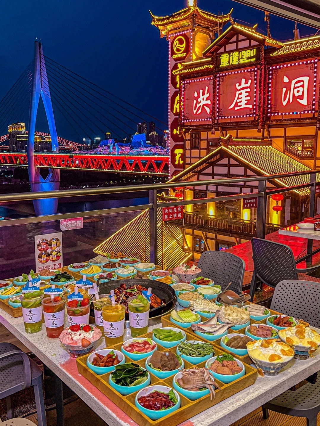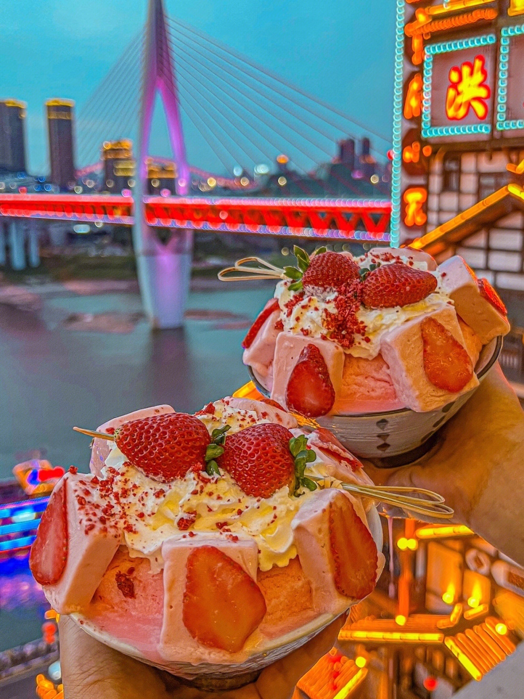 再来个他家的雪山冰解辣解腻!等到千厮门大桥和洪崖洞亮灯就是夜景zui佳的时候啦!
