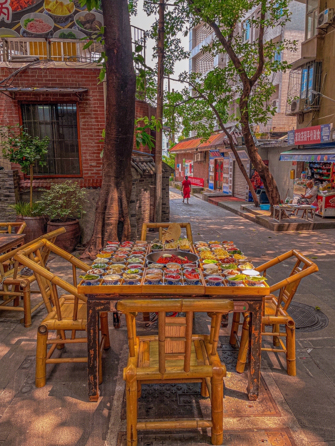 店里还很多好吃的火锅菜、蟹柳、午餐肉…!!还有店门口的三角粑和熨斗糕!小时候的记忆!!价格也才3r-5r!