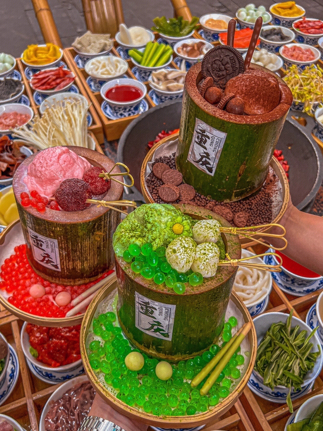 来重庆一定要吃的竹筒冰淇淋😭不吃白来了!!|||来重庆真的一定要吃这家!!在洪崖洞附近,是一家超有烟火气息的火锅店!在这里最体验到浓浓的山城味!!