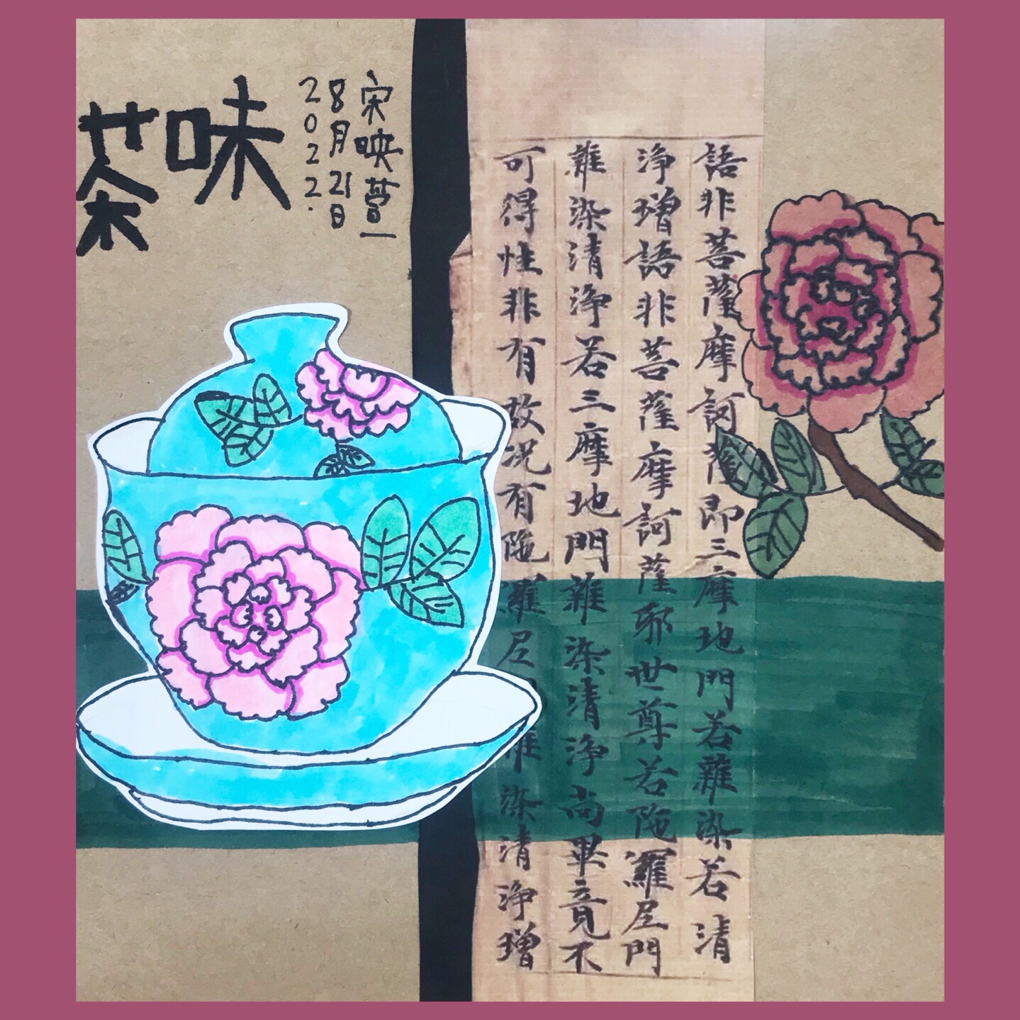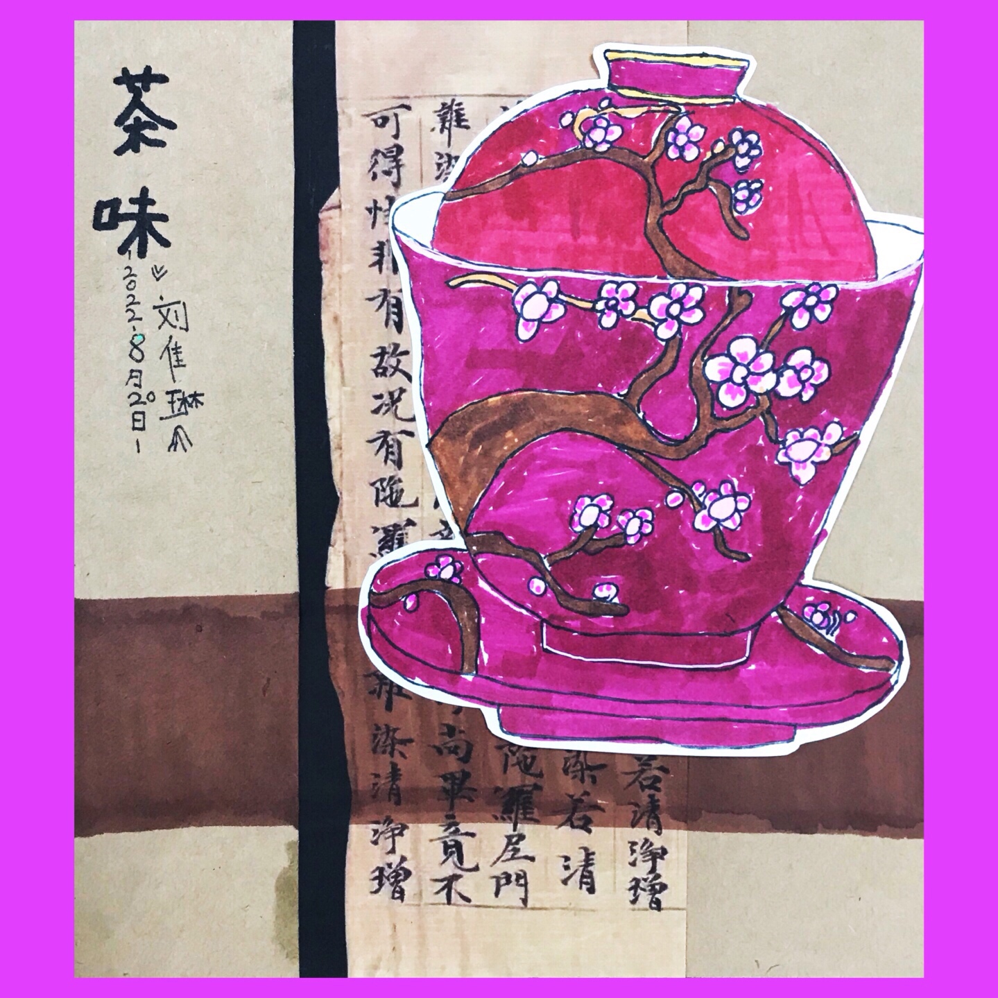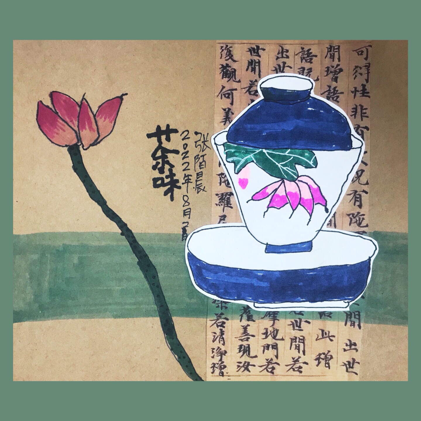 《盖碗茶》盖碗茶,四川等地人民的传统饮茶风俗。是一种上有盖、中有碗、下有托的茶具。又称“三才碗”,盖为天、托为地、碗为人。品盖碗茶,韵味无穷。所谓“盖碗茶”,包括茶盖、茶碗、茶船子三部分,观察这三部分之间的遮挡关系和透视,表现出前后上下的前后遮挡空间关系,同时添加丰富的花纹图案,锻炼线条造型能力和色彩的感知力搭配