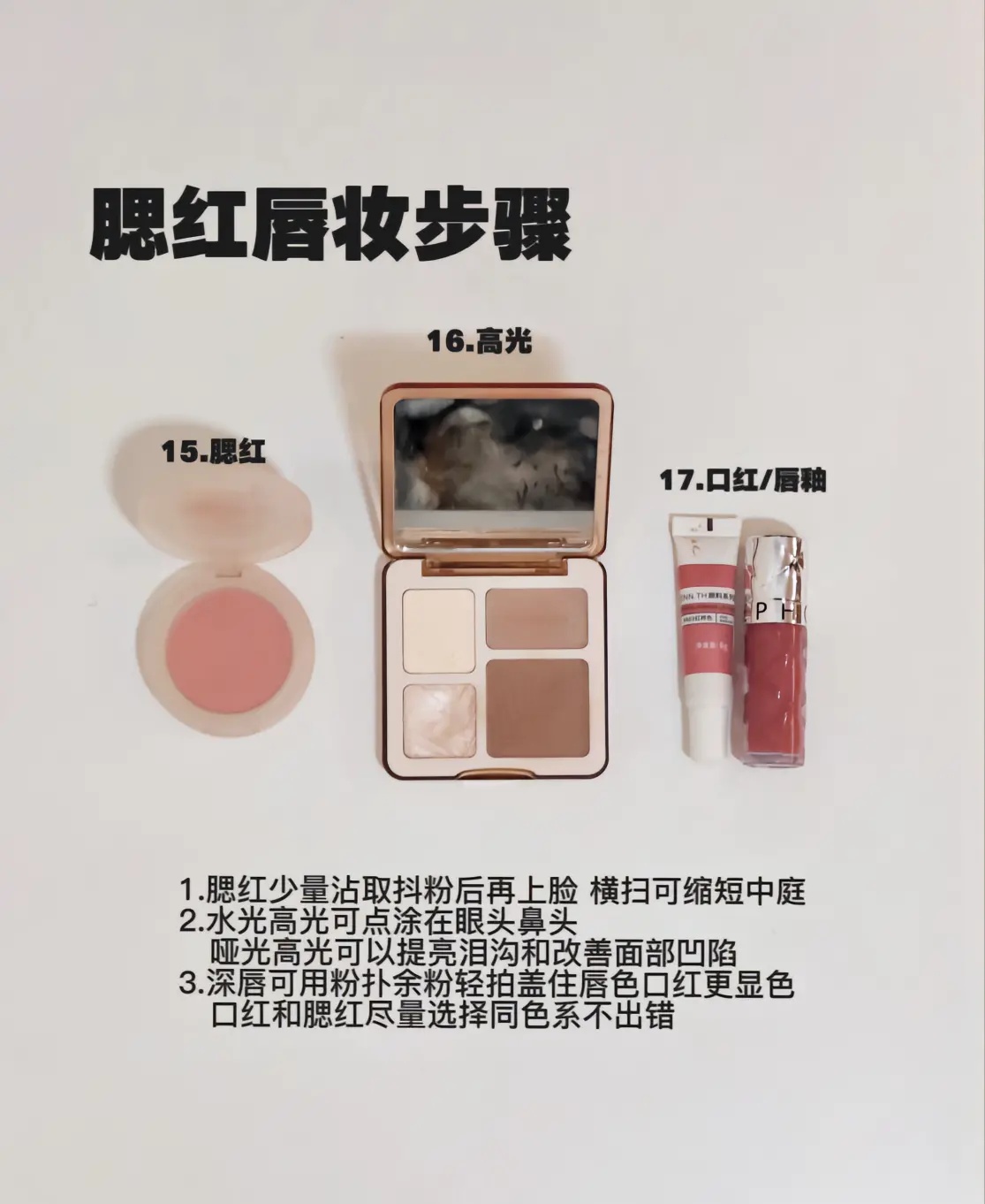 腮红修容唇妆步骤常用化妆工具