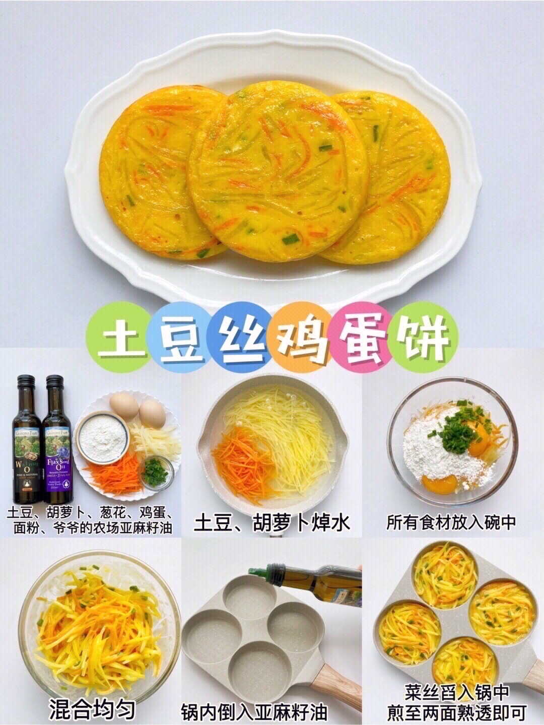 食材:土豆、胡萝卜、葱花、鸡蛋、面粉、亚麻籽油