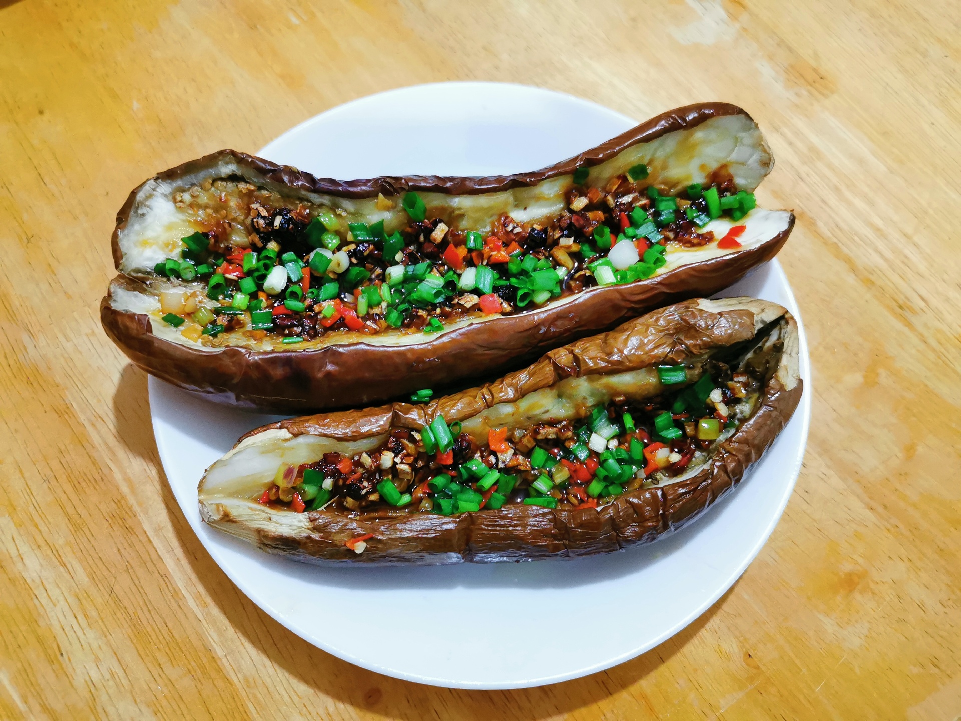 但 本宝宝 烤茄子 没放油 所以..皮就不适合吃啦!