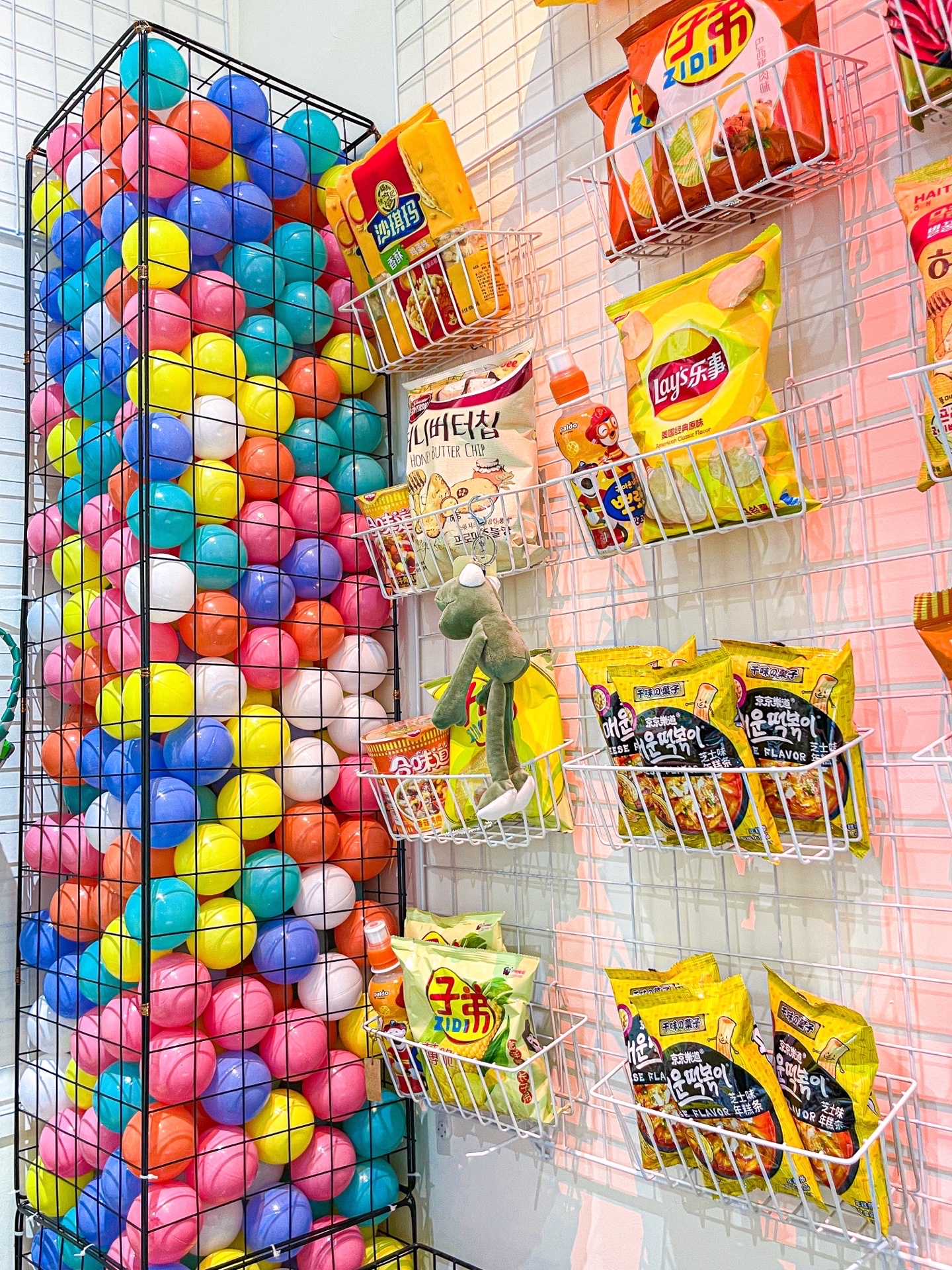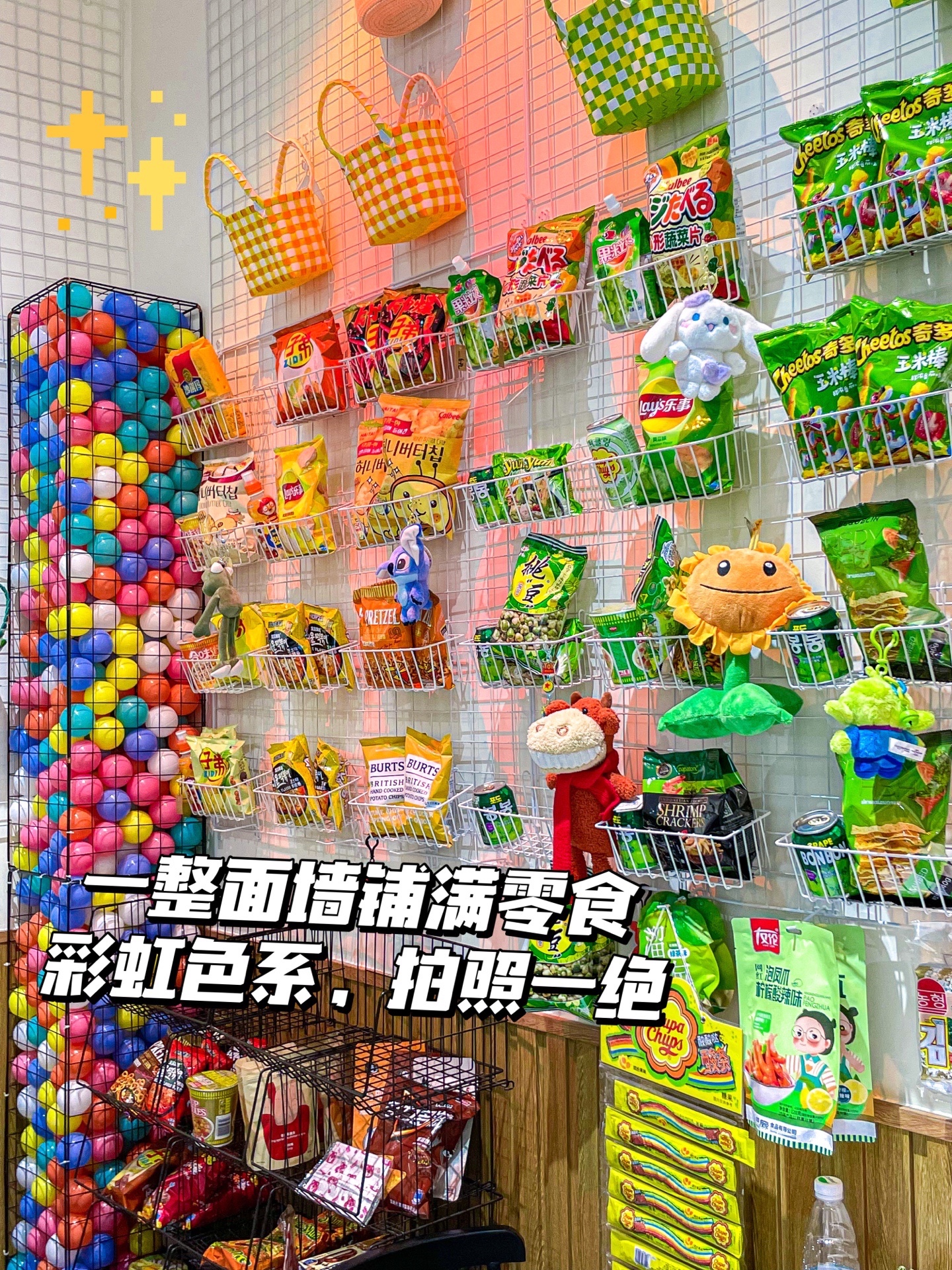爆炸可爱!我拍不出他的美!现场看感觉更好看一点!一整面零食墙太治愈了!活泼明亮彩虹色!