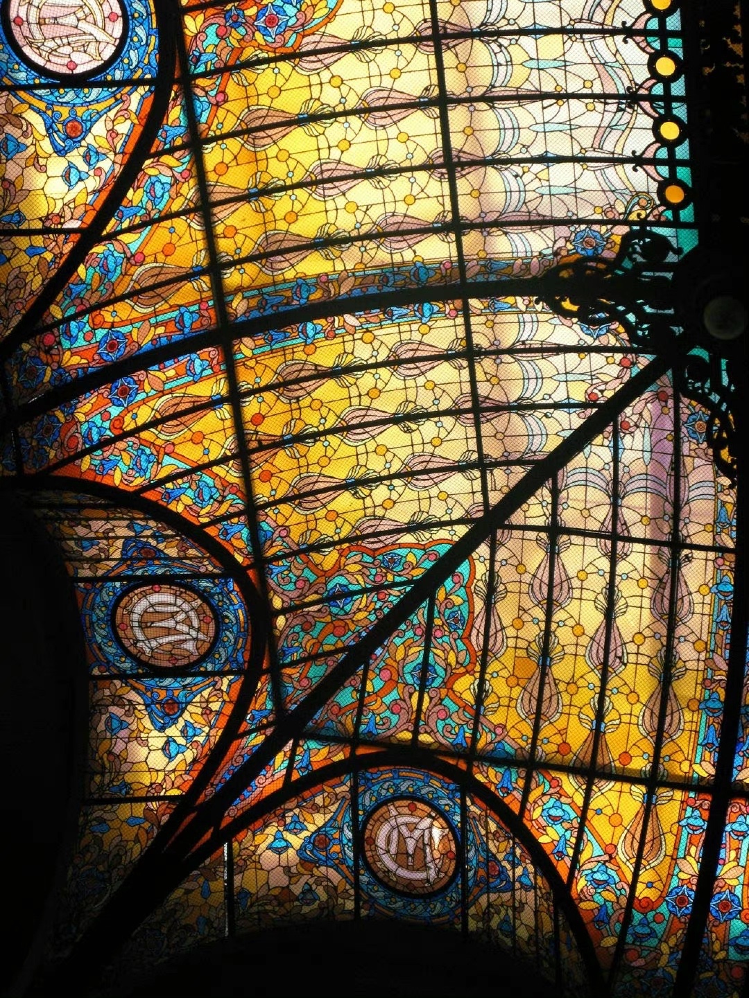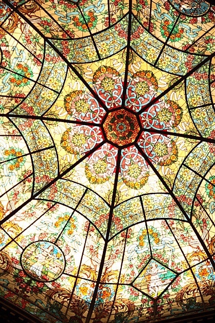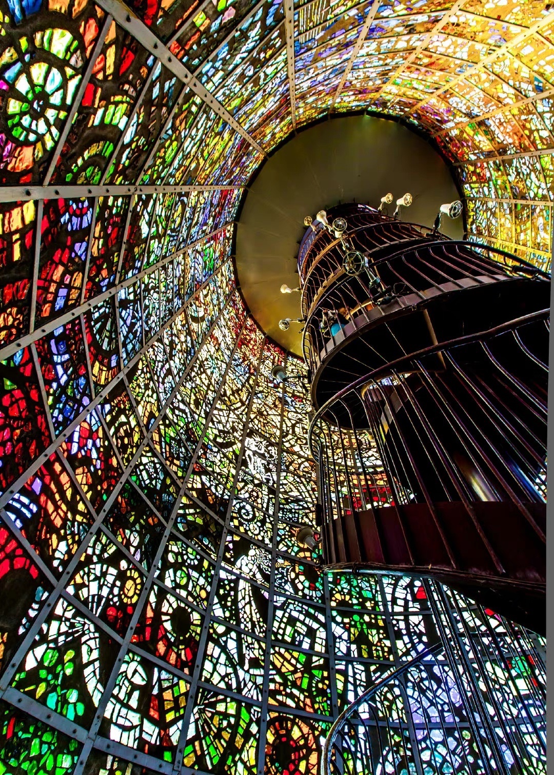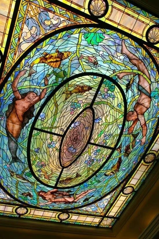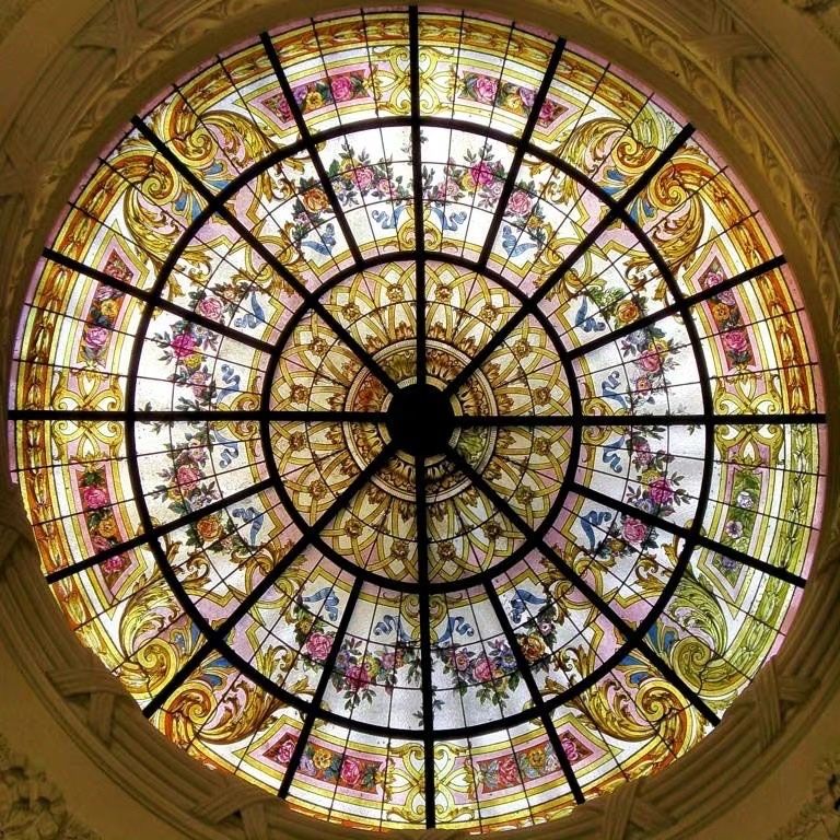 穹顶的星辰宇宙 古老的建筑中 那些绚丽而壮观的彩色玻璃天顶花窗