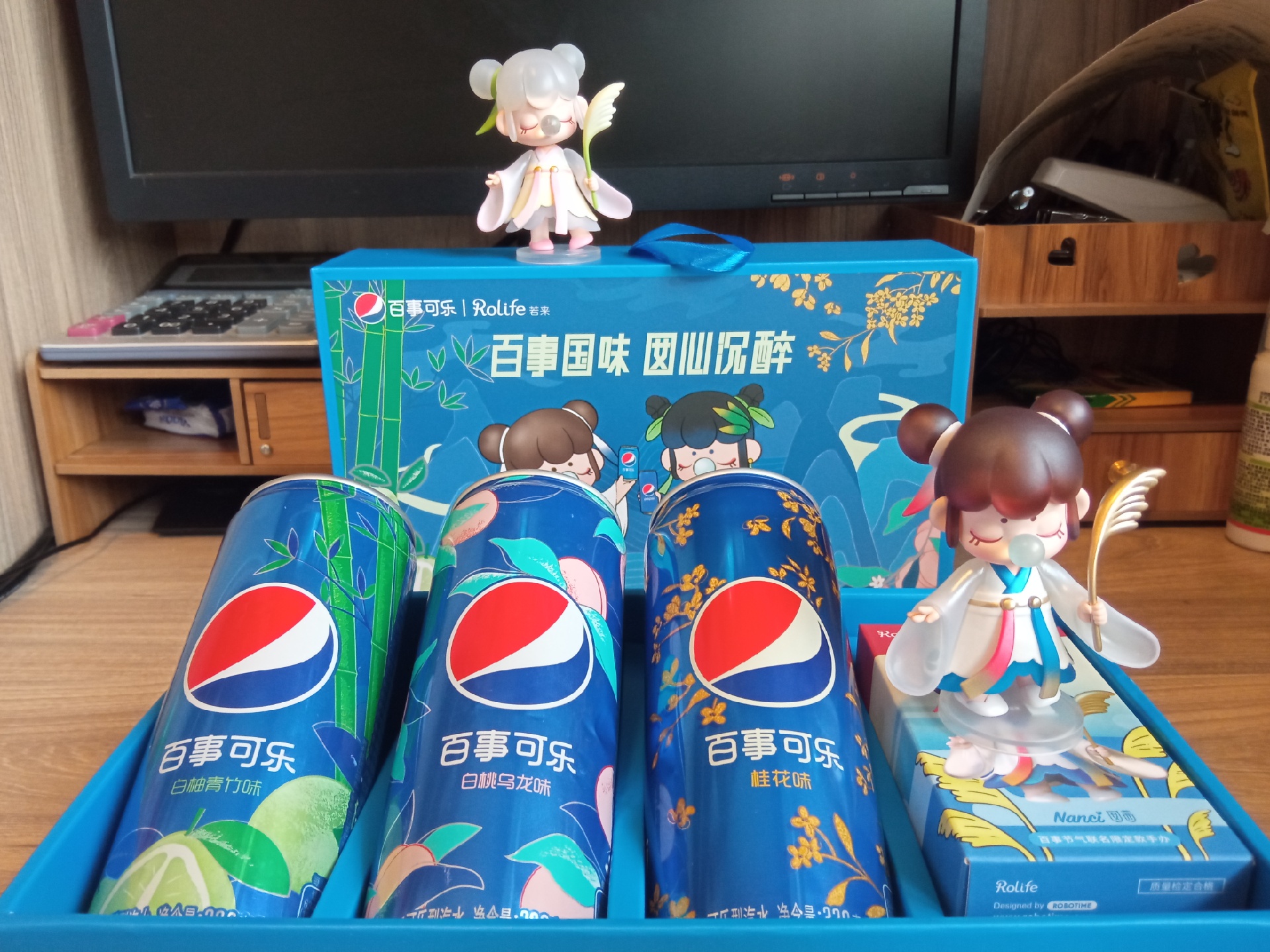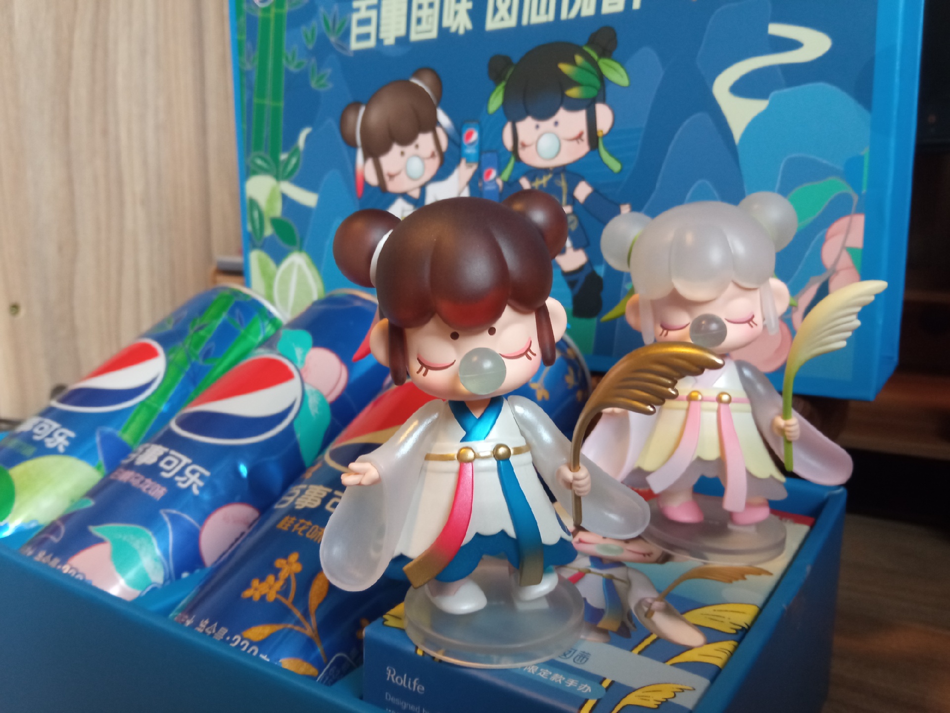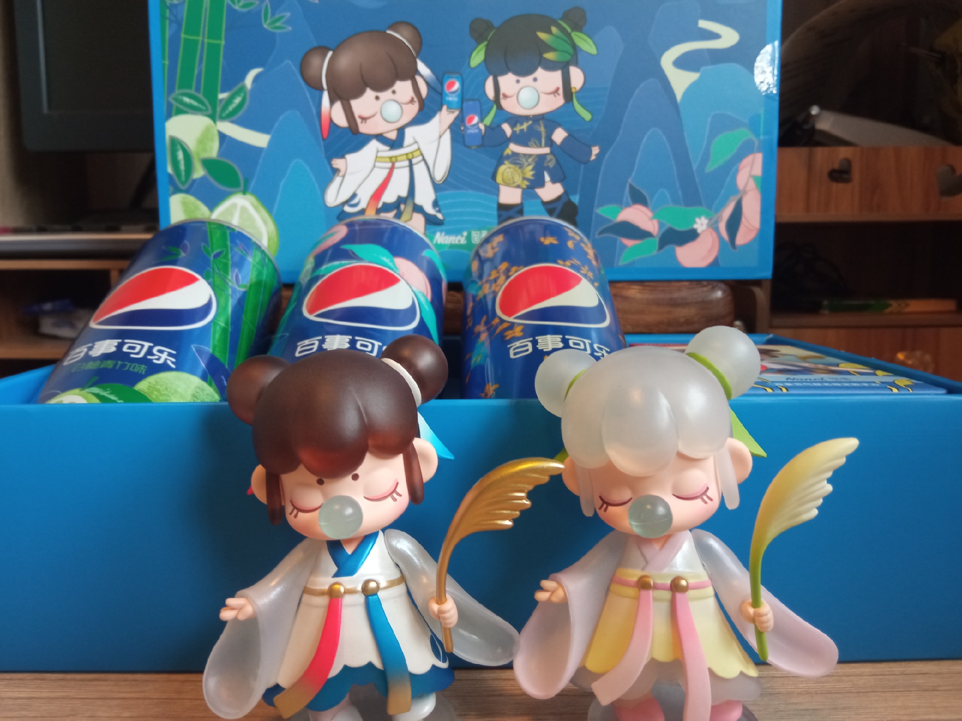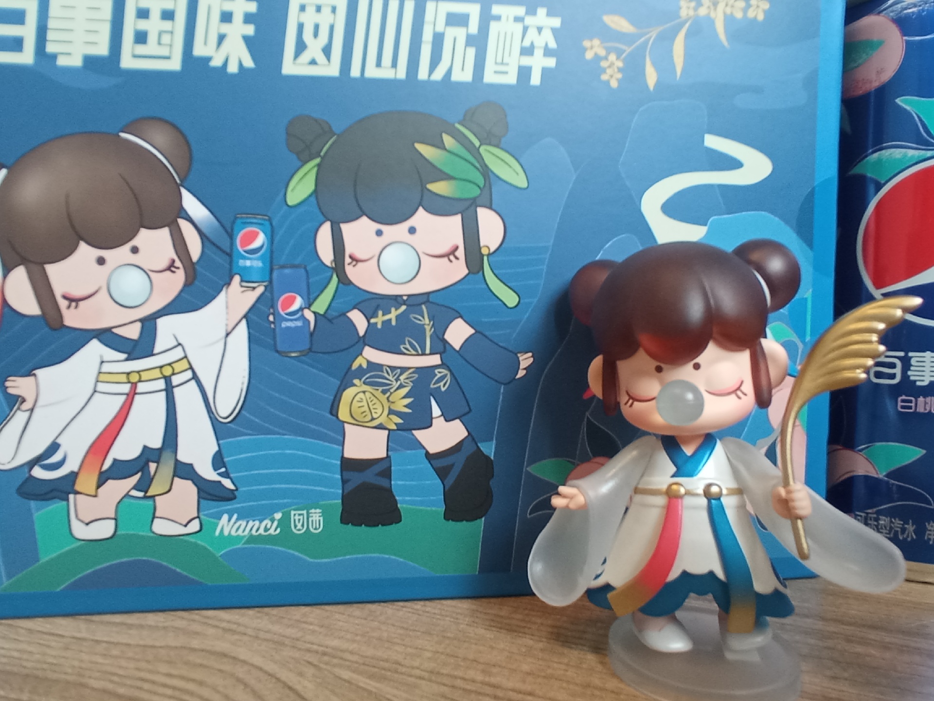 限定的Nanci联名手办,红蓝双丸子头很有百事的特点了