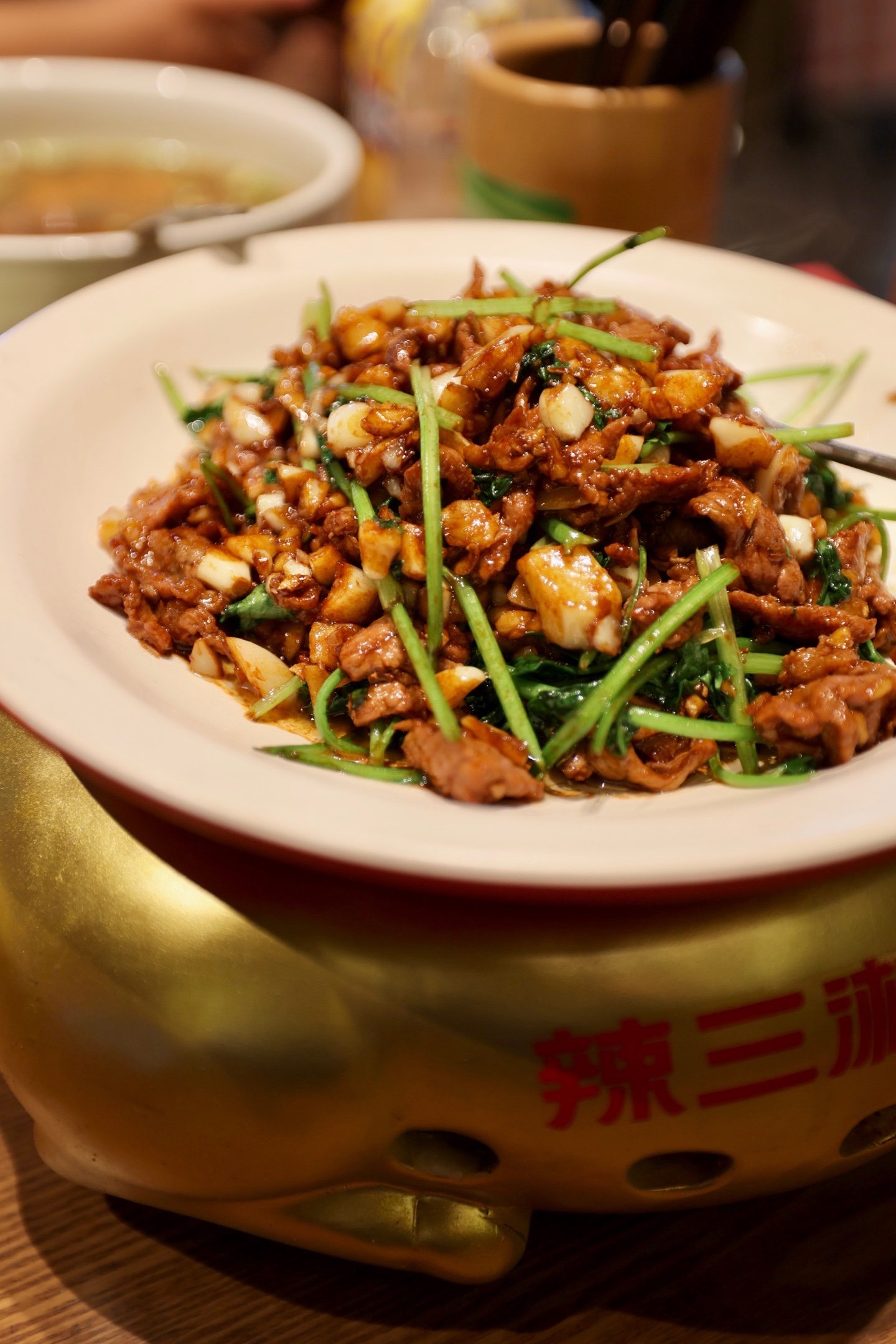 😍现在周围变成了围绕万达附近的食街,有意大利餐厅,炸物店和小龙虾店等。为了吸引游客,有很多网红的打卡点📷,午饭我们就安排来这里吃正宗的湘菜,点评推荐我们来到路口的这家【辣三湘】,走在门口就听见有艺人在弹词,点评团购很划算哦,而且可以问问服务员可不可以做不辣,好喜欢这家店,不辣的湘菜一样很香很好吃,尤其是小炒黄牛肉🐂和梅菜烧茄子,豆腐脑汤没有喝,有点不习惯,🌶口味鸭掌筋是唯一一个免不了辣的,一大桌菜才198。