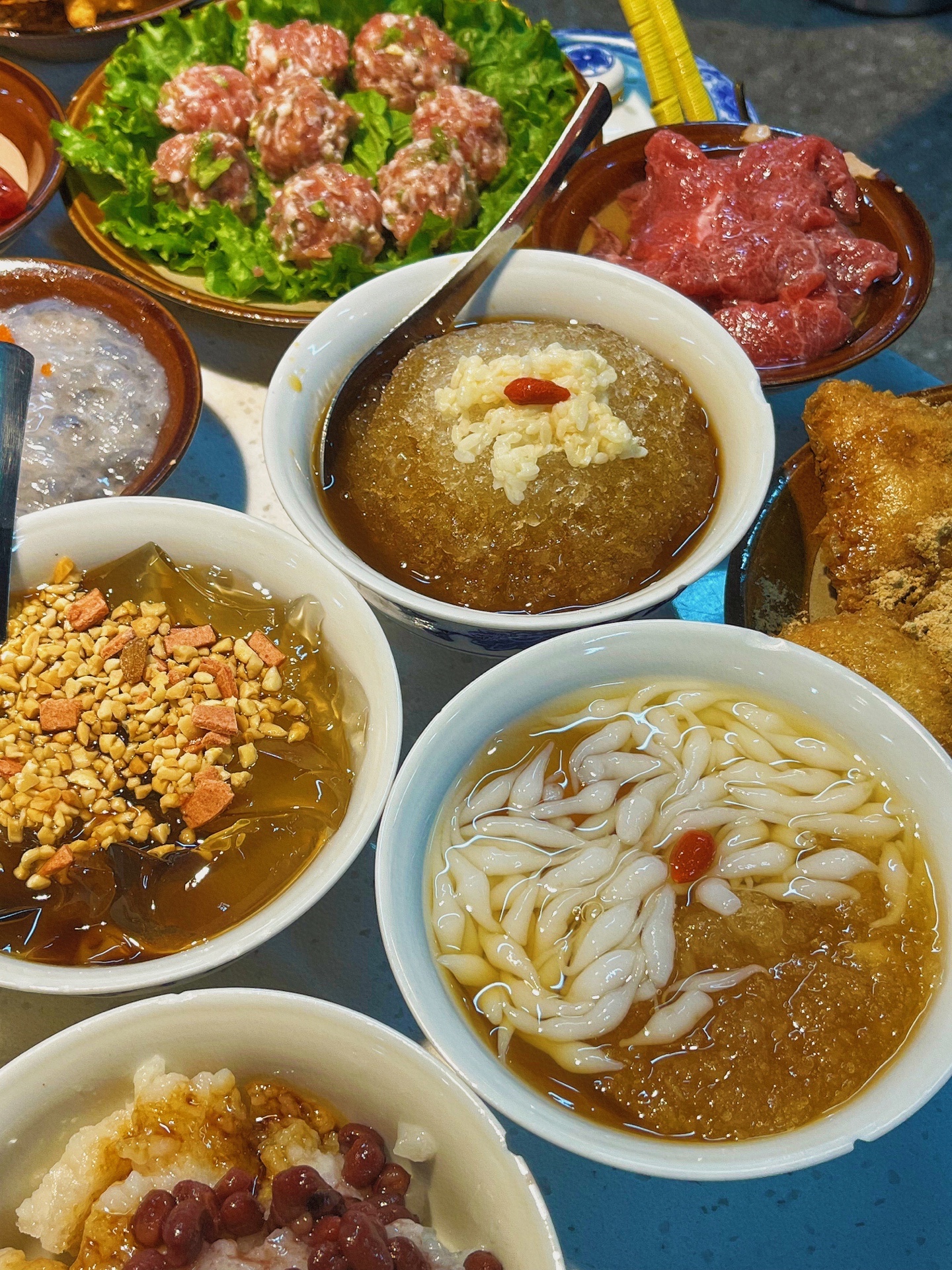 ◾️菜品:菜价不高,菜10元上下,嫩牛肉也就32r 、小酥肉24r等等,都是小碗的,菜品基本没有雷点,如果一定要说雷的话,就是打卡收藏送的红糖冰粉,真的太甜了!