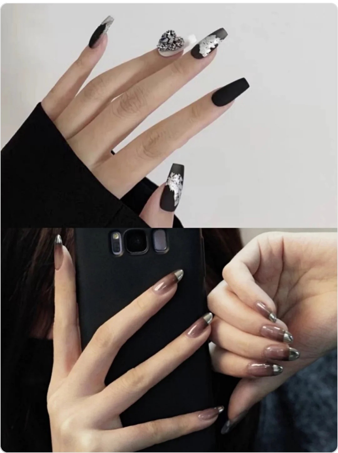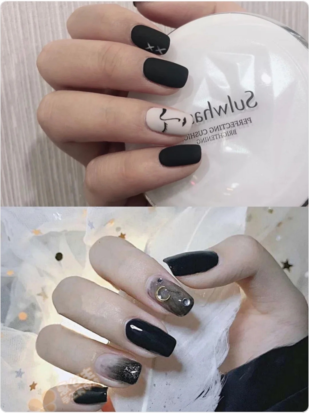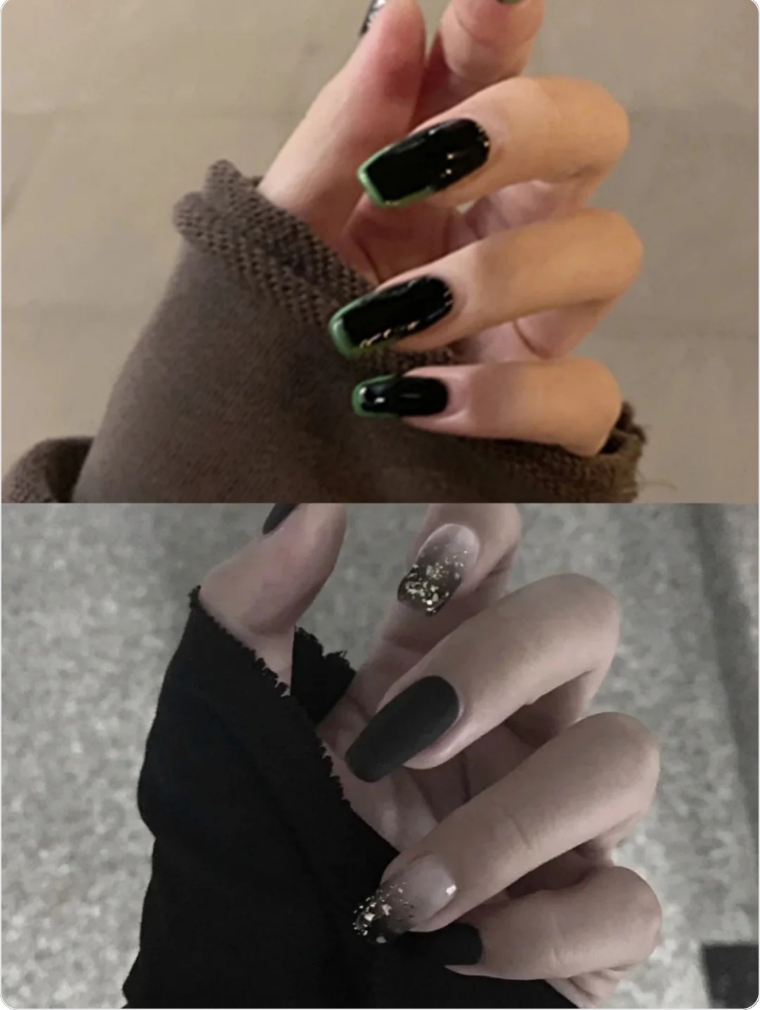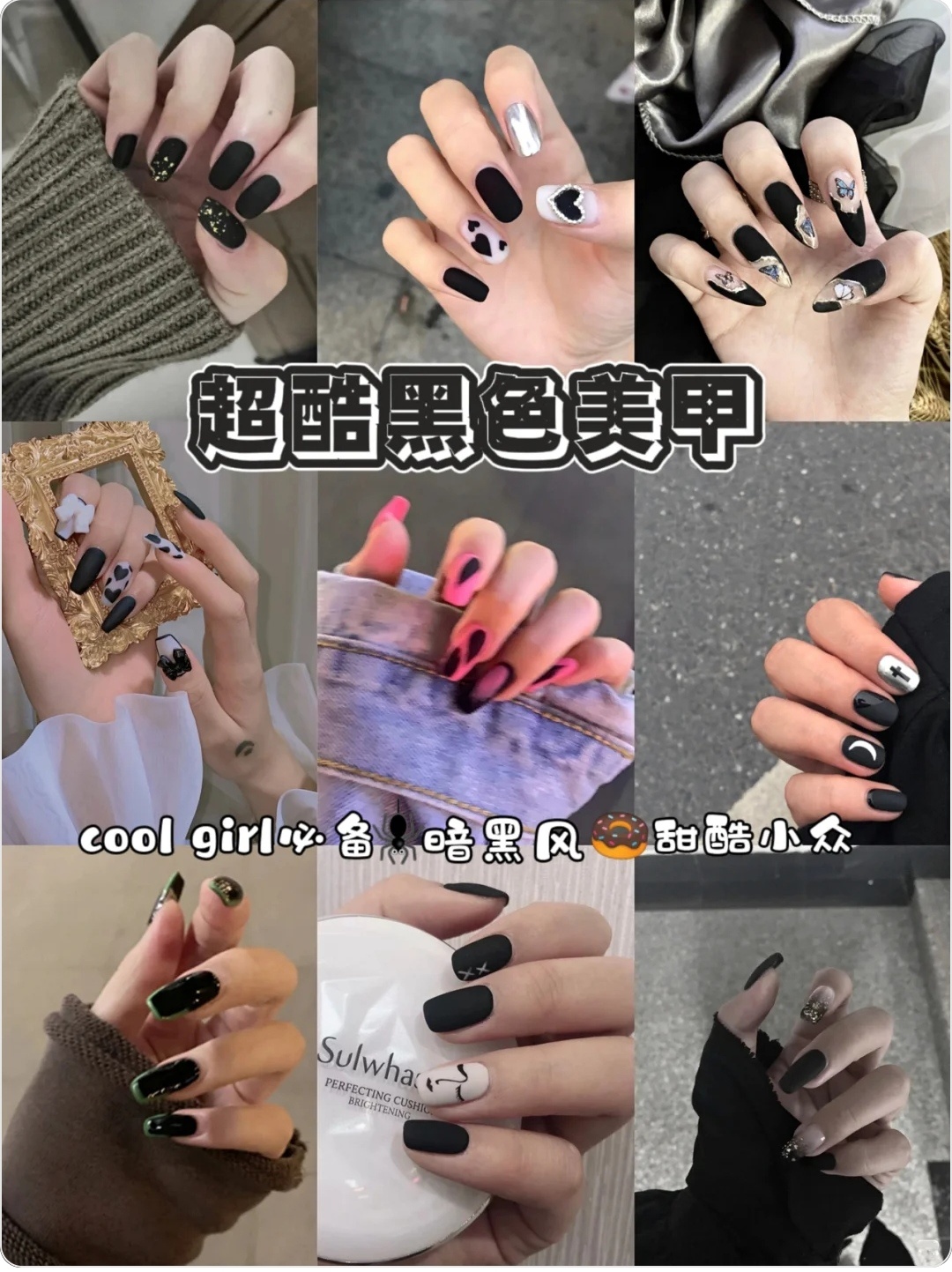 美甲配色分享|甜酷美甲|暗黑美甲简约高级的暗黑美甲你 get 了吗