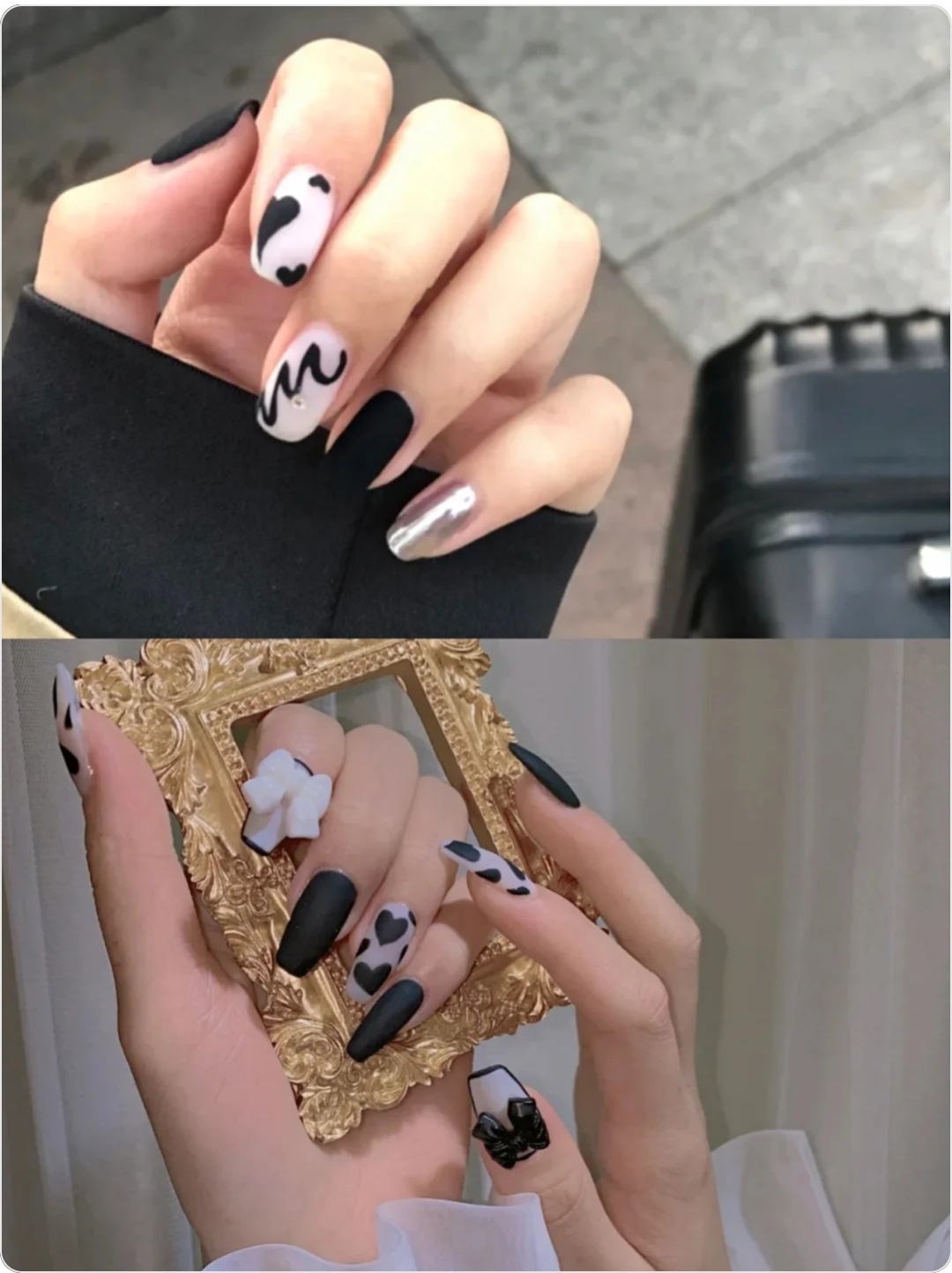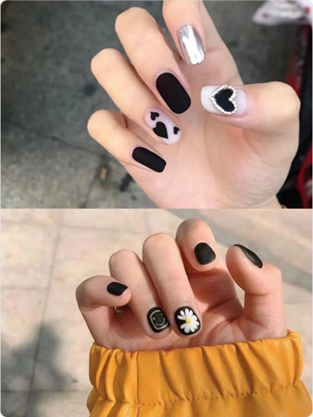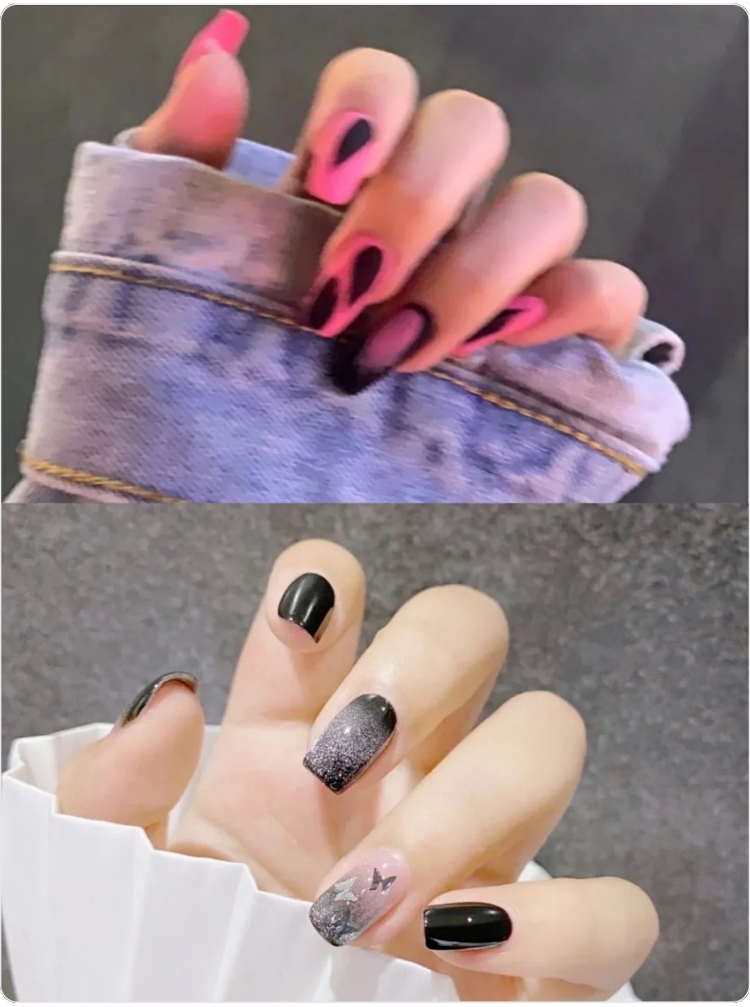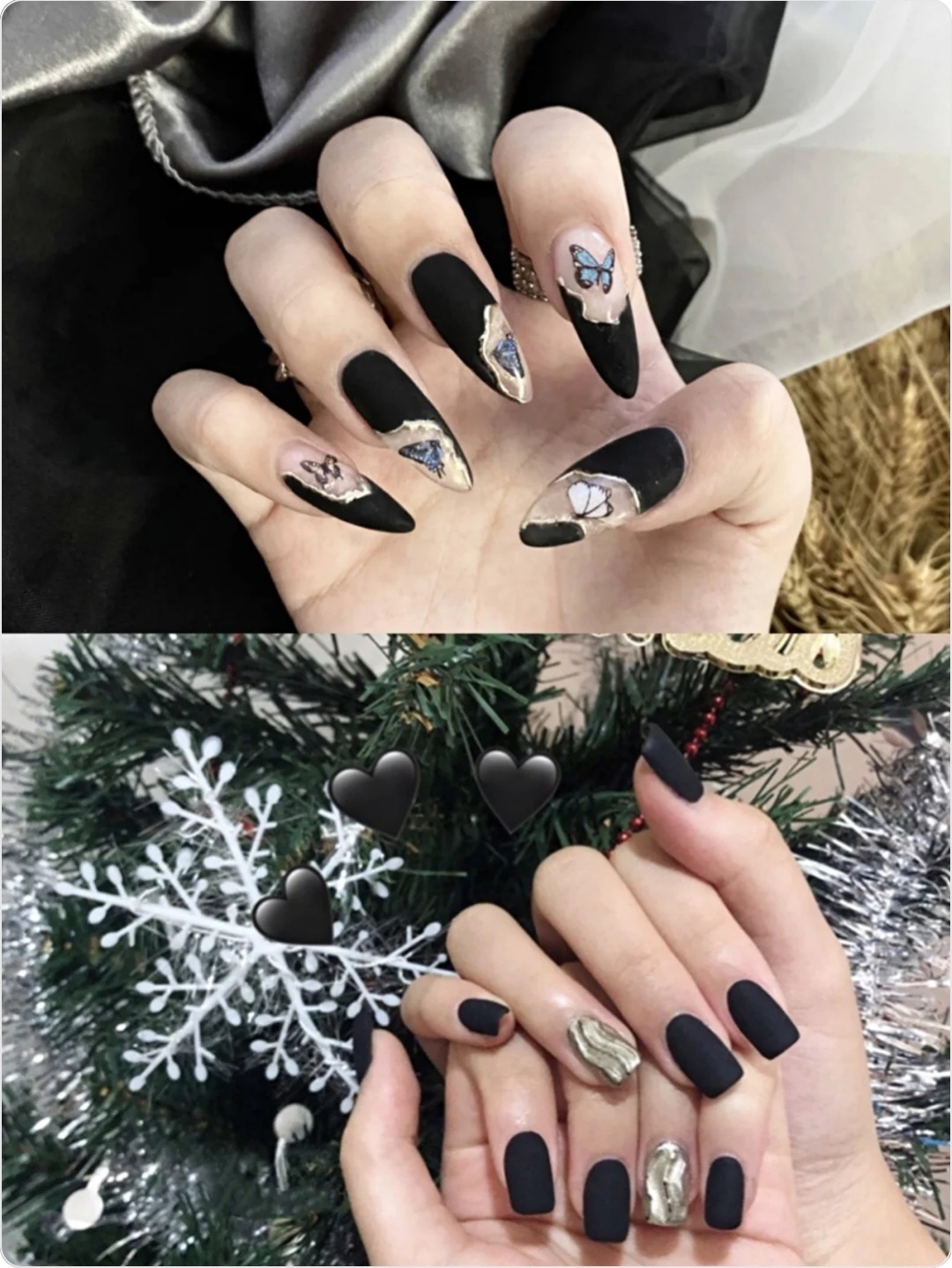 美甲配色分享|甜酷美甲|暗黑美甲简约高级的暗黑美甲你 get 了吗