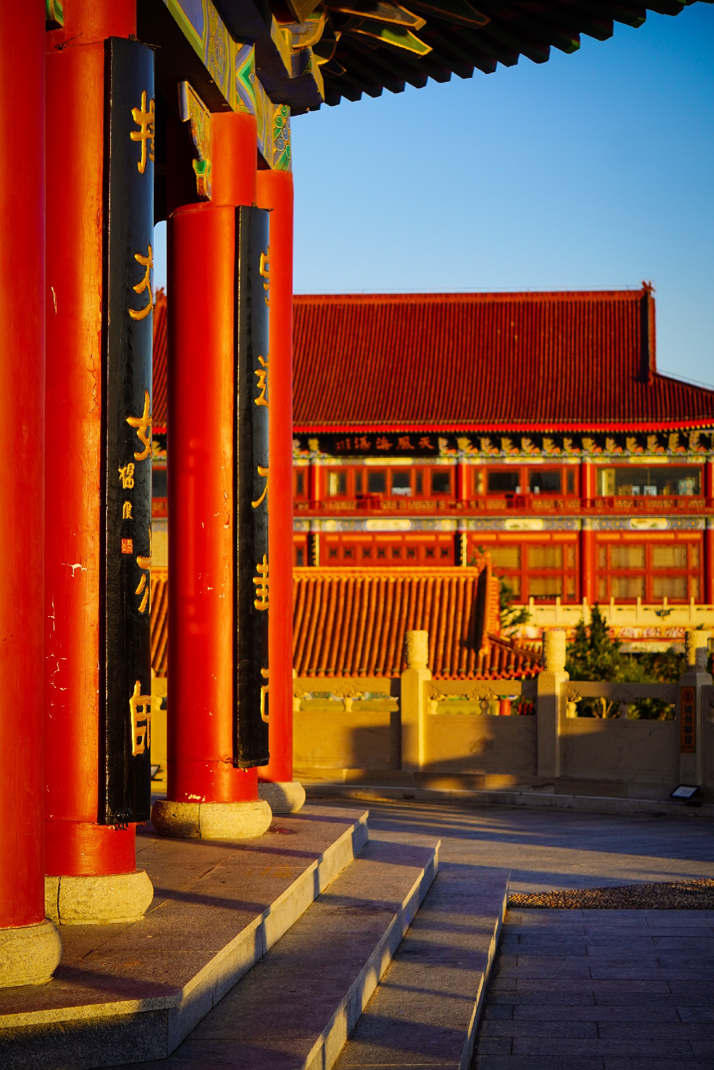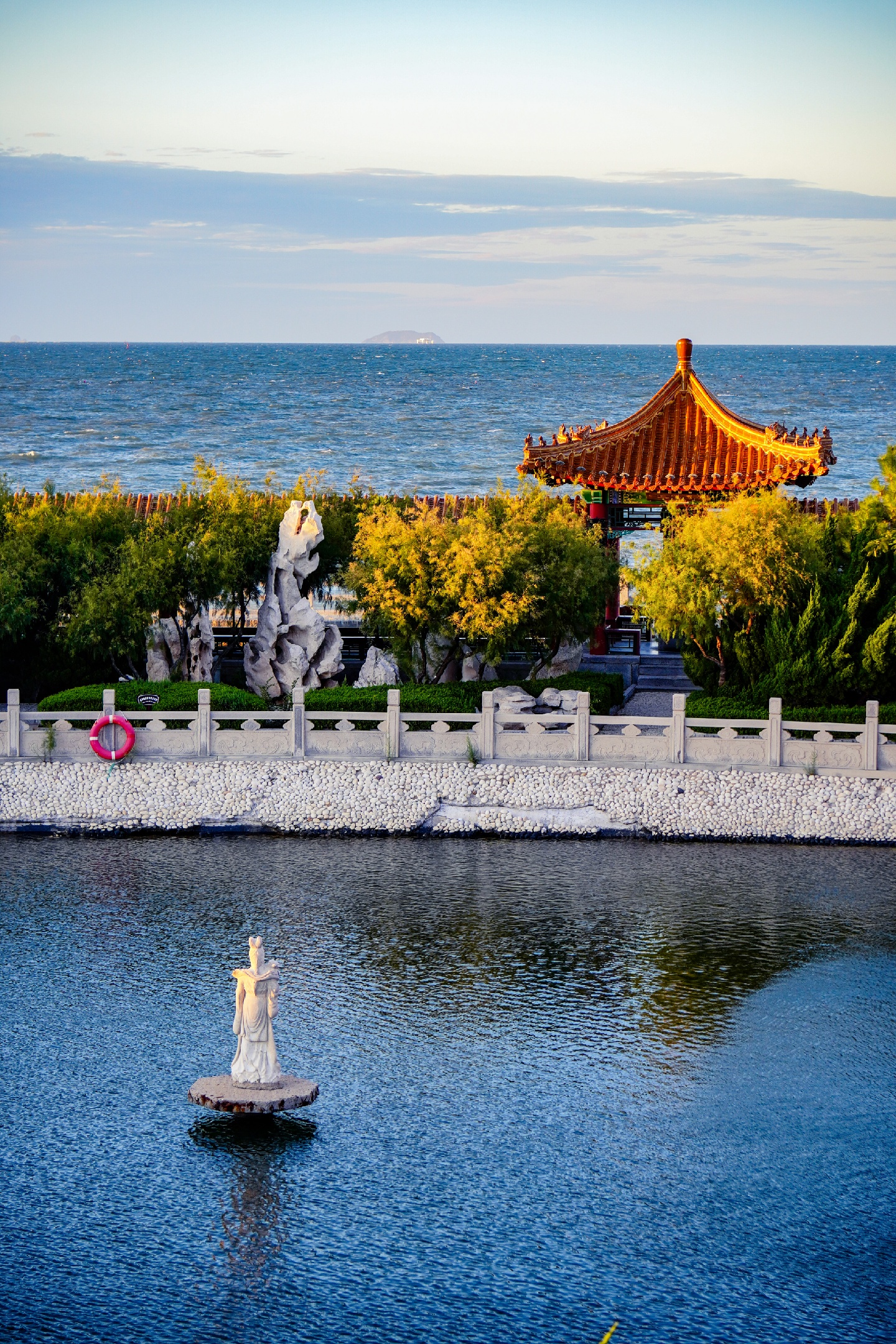八仙过海景区,位于山东烟台蓬莱市,是一个傍海而建的古典风格建筑群。在金色的夕阳和蓝色的大海映衬下,这里的亭台楼阁气势磅礴、悠远壮丽。