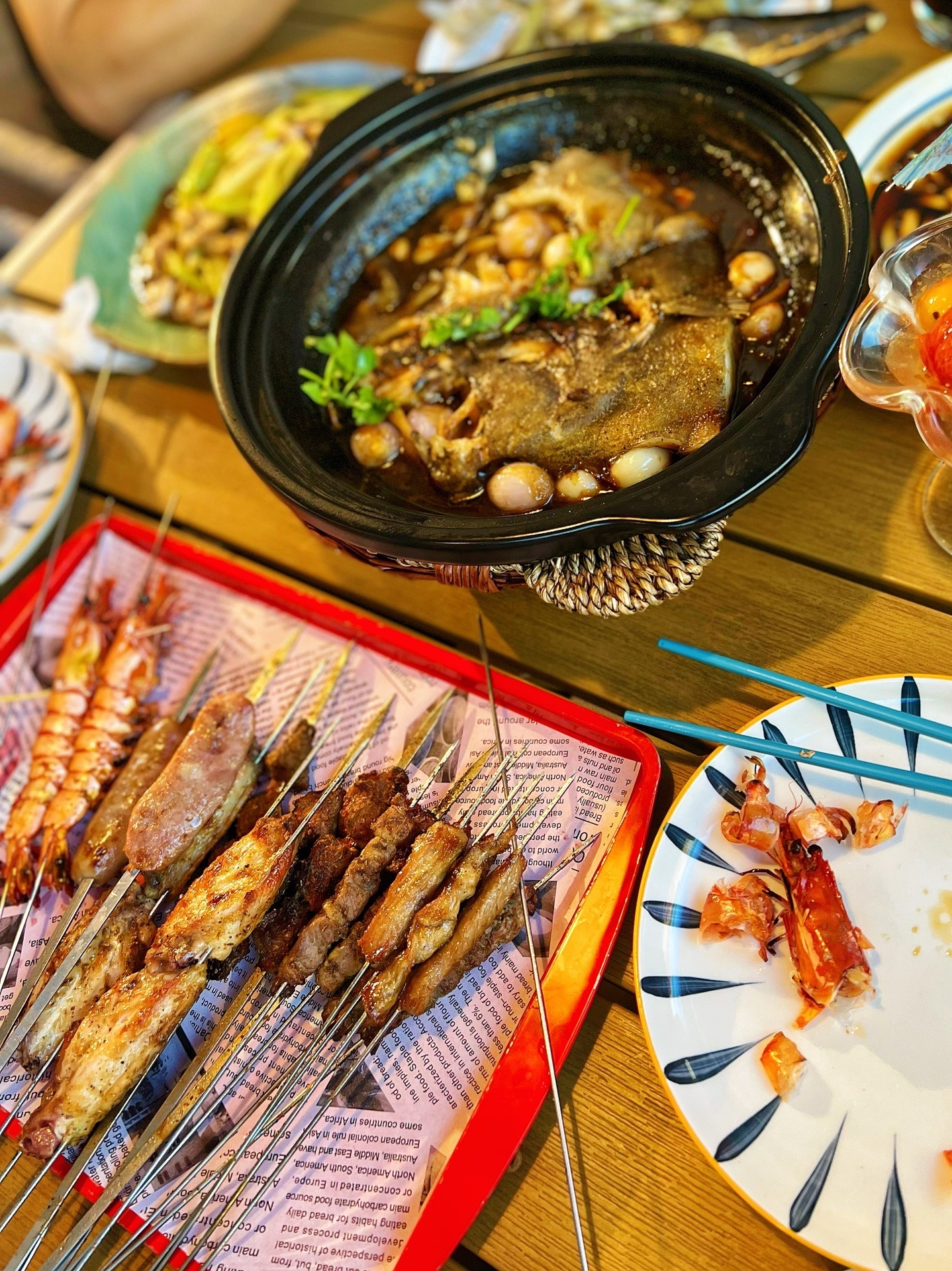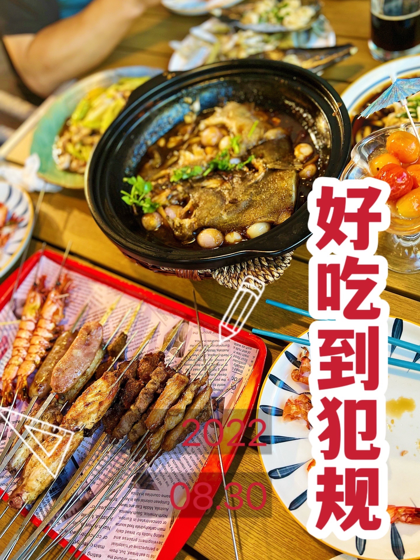🍒「蒜蓉生蚝」「蒜蓉鲜贝」「烤鲳鳊鱼」「香蕉」「鸡翅」「羊排」烤物也超好吃,没有烤糊,火候很好,食材很新鲜,口感超棒。