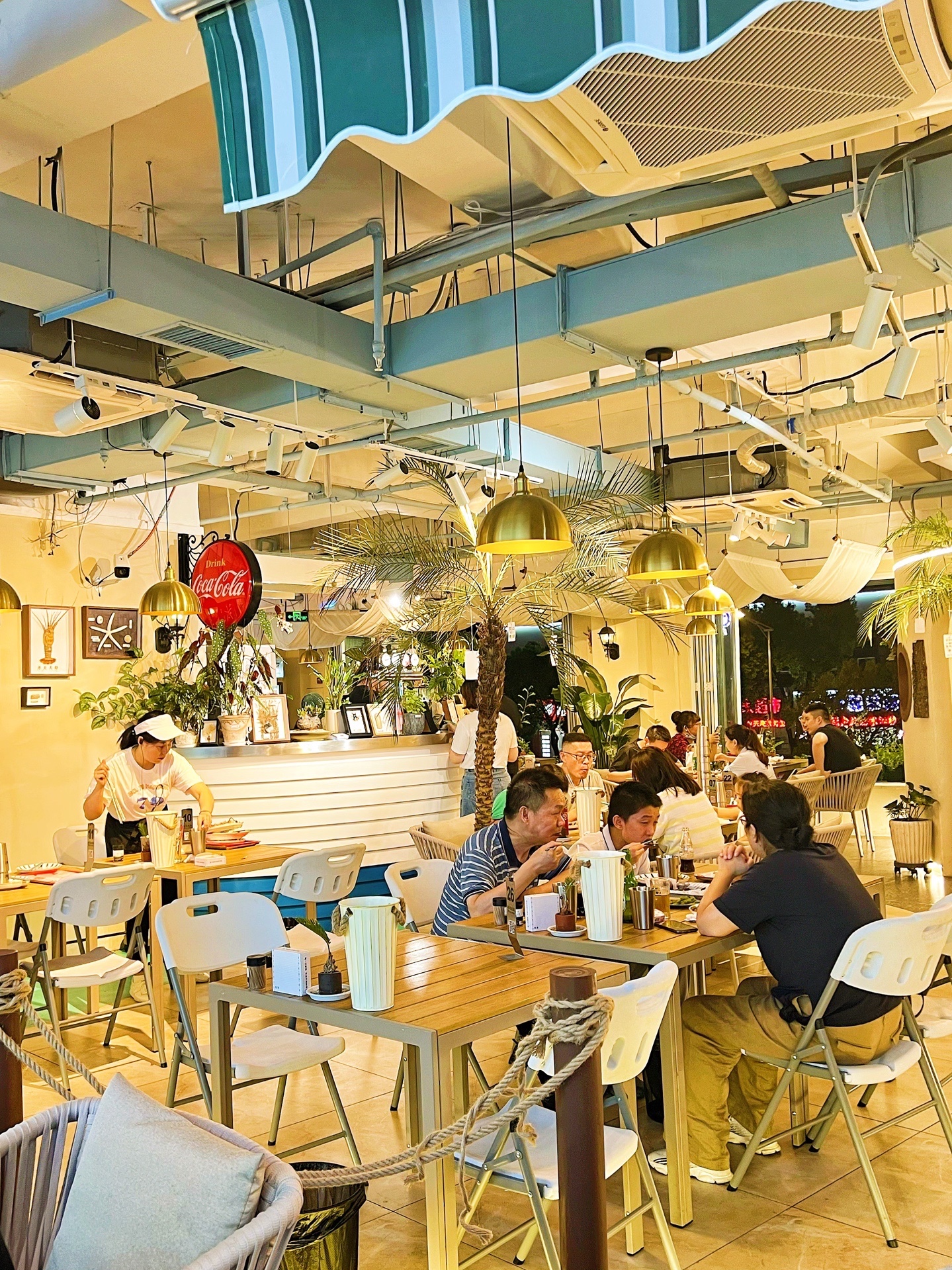 🫐店铺装修风格很海风,氛围感很好,繁而不乱,非常出片,座位间隙比较合理,是我喜欢的类型。