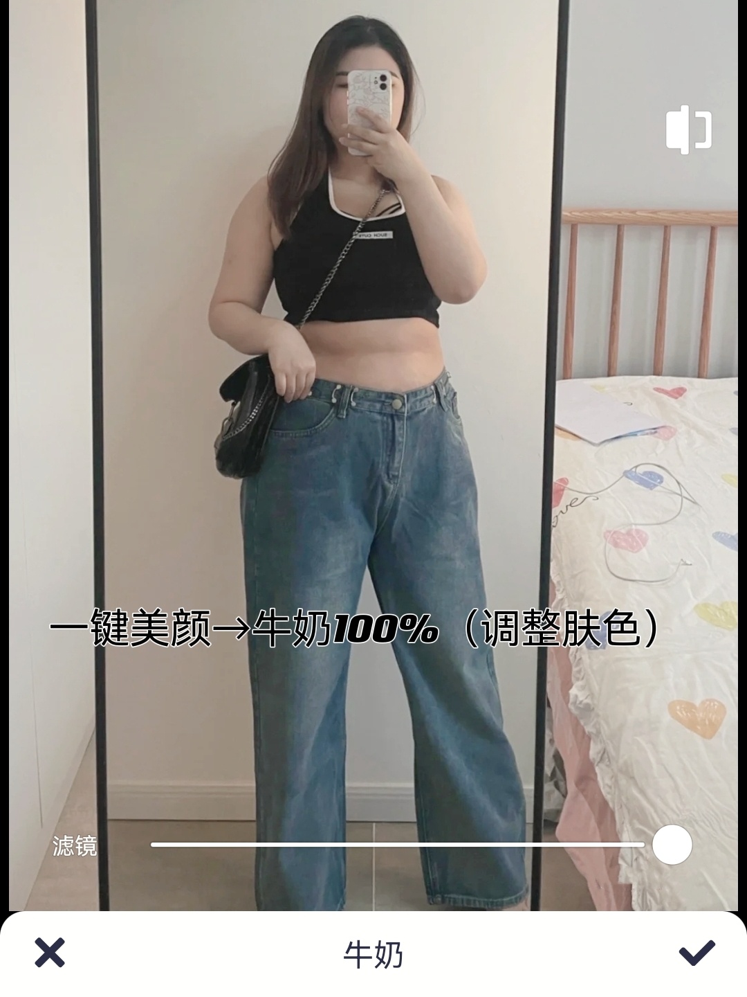 1,一键美颜→牛奶:100%(美白肤色)