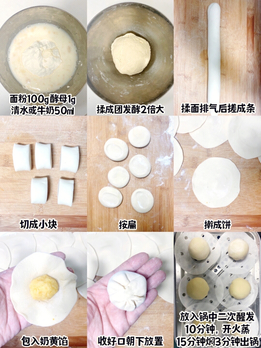 3、这次用的是两次发酵的方法,用一次的也可以,在奶黄包笔记中也分享过做法。