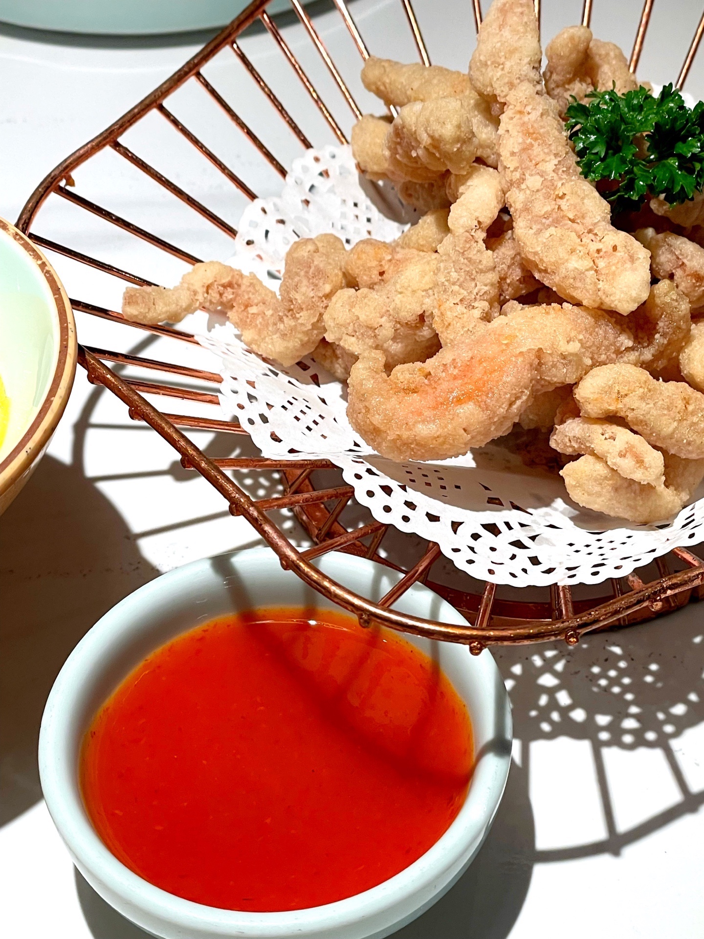 很有特色的炸瘦肉 蘸料是酸甜口味