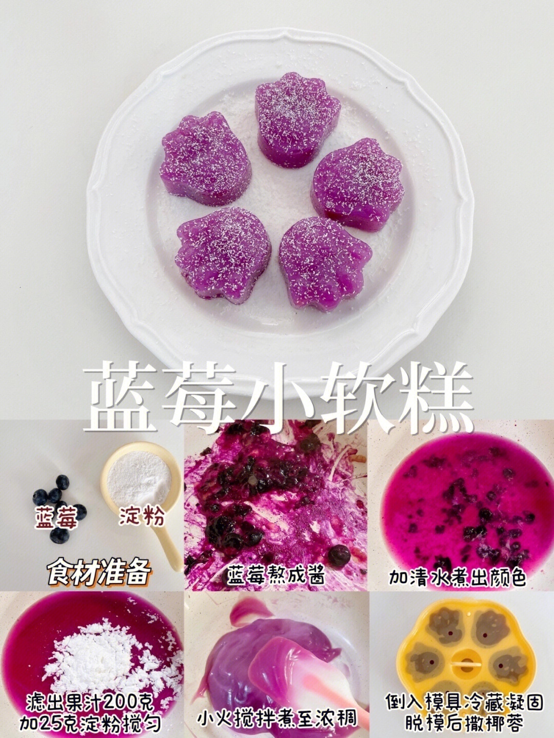 1⃣蓝莓熬成酱加清水煮出颜色,滤出果汁200克加淀粉搅拌均匀